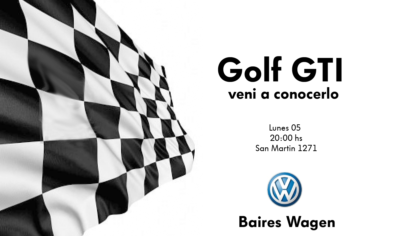 La concesionaria oficial de la zona presenta el El NUEVO GOLF GTI. Baires Bagen lo hará el lunes 5, a las 20 hs. con una recepción a clientes, amigos e invitados especiales. Lo hará en la cede de la Avda san Martín 1271 , 9 de julio. A los fines de crear cierta incógnita, en la invitación que han cursado no muestra el modelo, tal como suele hacerse, creando curiosidad, la que se revelará en la asistencia.