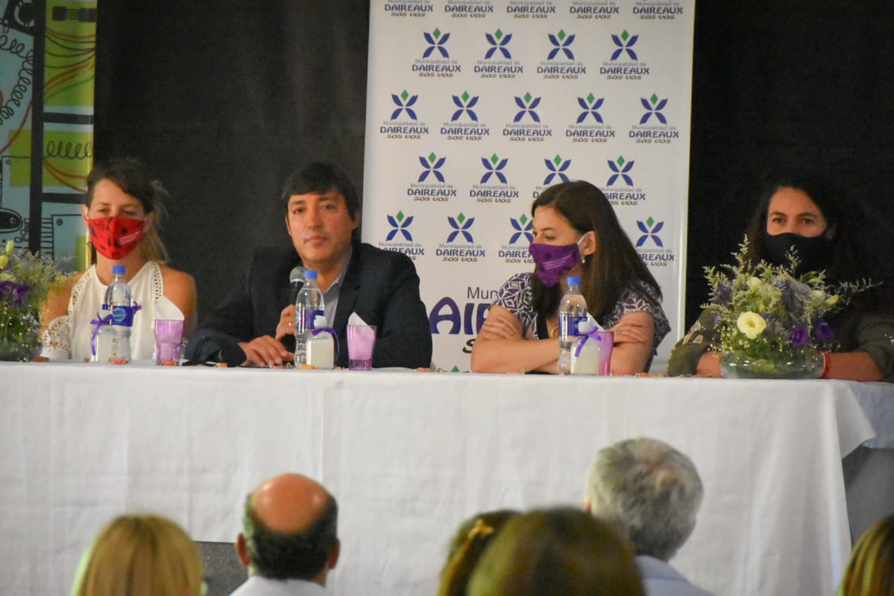 La ministra Estela Díaz junto al intendente Alejandro Acerbo encabezaron el acto de cierre en Daireaux en el que además participaron la diputada provincial Marisol Merquel y la directora del Área de Derechos Humanos, Mujeres, Género y Diversidad Flavia Tessari.