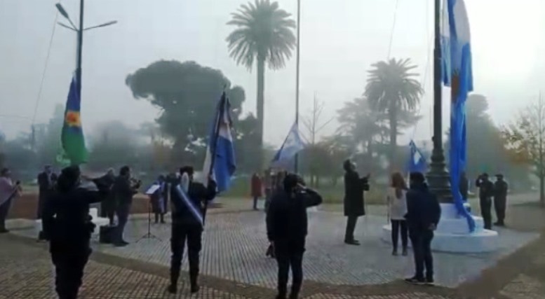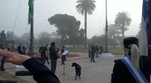 La ceremonia, austera por la pandemia, y los cuidados de fase 2, consistió en el izamiento de los pabellones que caracterizan el paseo público. En ese momento la temperatura era de 0 grado.