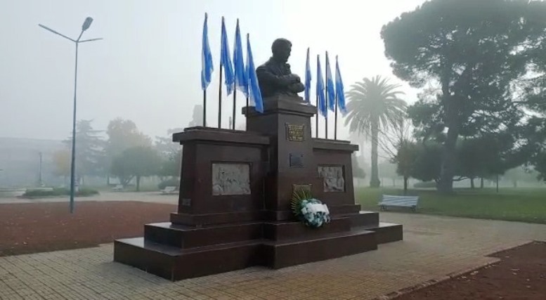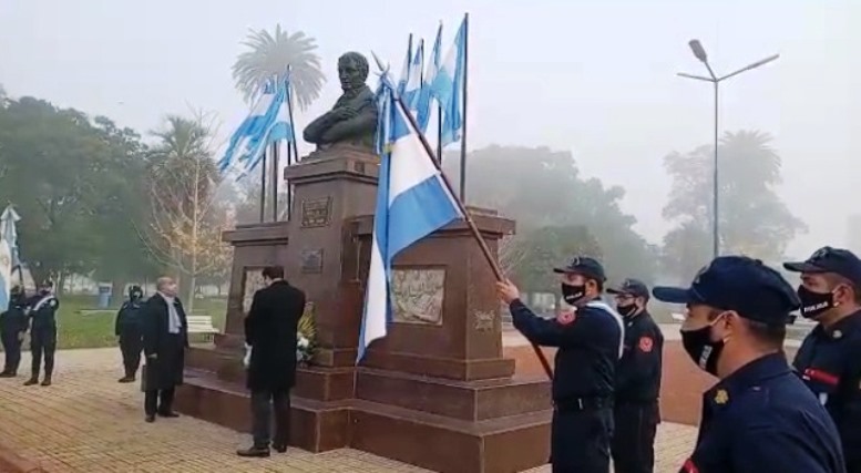 Fue en la plaza central de Nueve de Julio, que lleva el nombre del prócer, del cual hoy se recuerda los 201 años de su muerte, bajo una neblina que tapó el sol, que caracterizaba la fria jornada, minutos antes.
