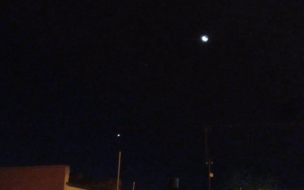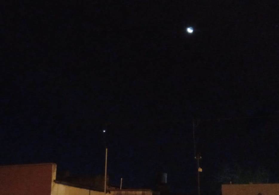 La luz blanca era fuerte, mientras comentaban la escena, la mujer fue en busca de su celular para captar lo que los asombraba.