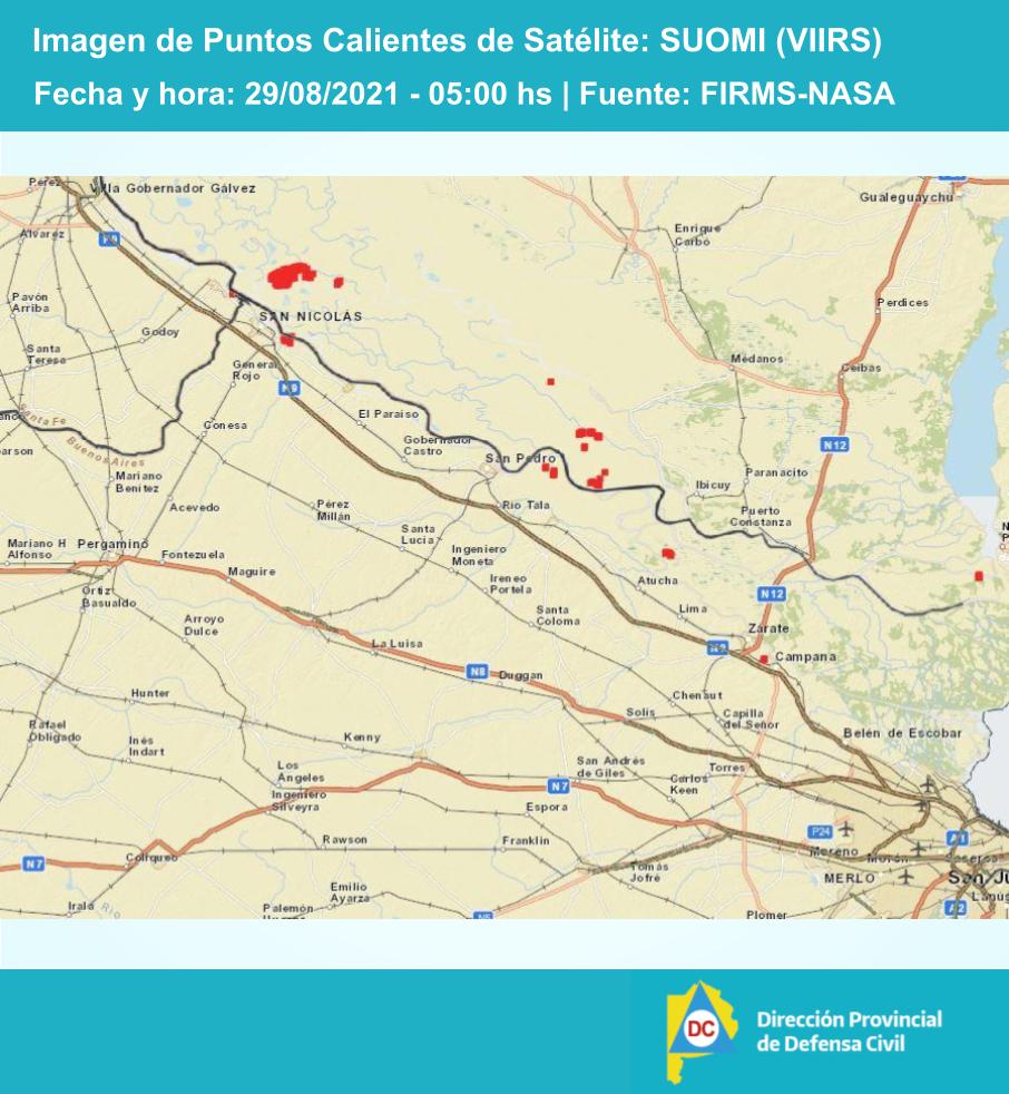 En las islas frente a San Nicolás, desde el gobierno provincial se precisó que se observaron  focos de incendio mediante monitoreo satelital. Los mismos comenzaron a divisarse el pasado 20 de este mes y a su vez, el viernes último se incrementaron.