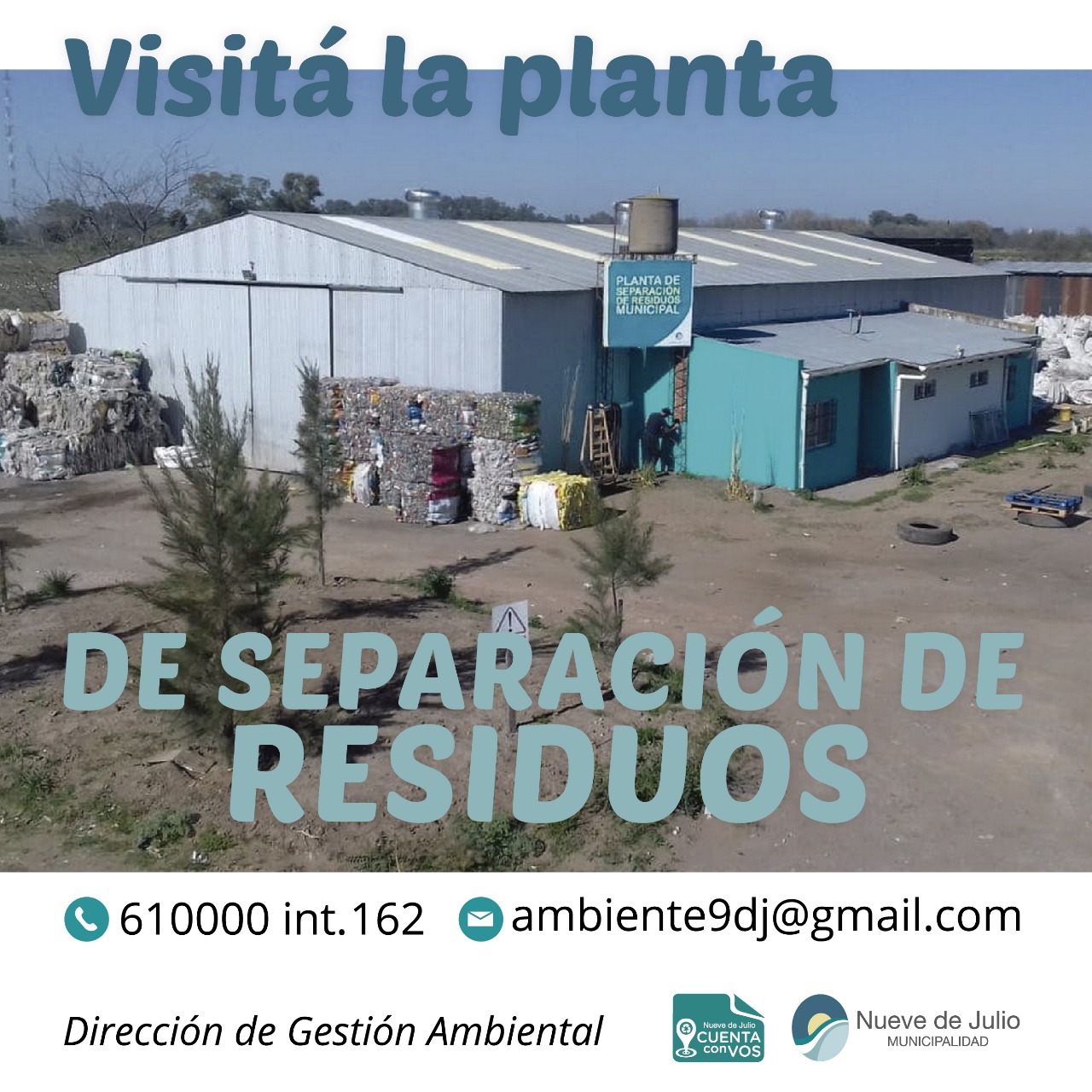 La Dirección de Gestión Ambiental de la Municipalidad de Nueve de Julio informa que para el presente ciclo lectivo 2021, se halla abierta la posibilidad de coordinar visitas a la Planta de Separación de Residuos, para conocer el proceso de recuperación de residuos reciclables y el trabajo que allí se realiza.