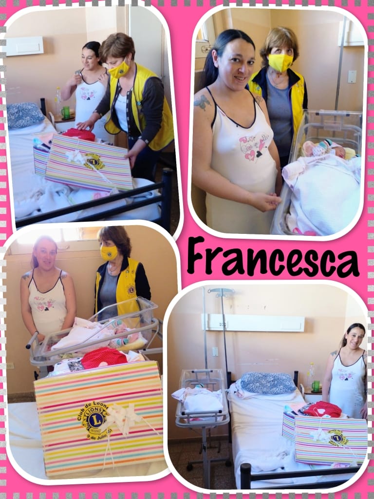 Este domingo, en el Hospital Julio de Vedia nació Fracesca, primera bebé con motivo del Día de la Madre, y desde el Club de Leones se le hicieron llegar, tanto a la recién nacida como a su madre, varios regalos de suma utilidad.