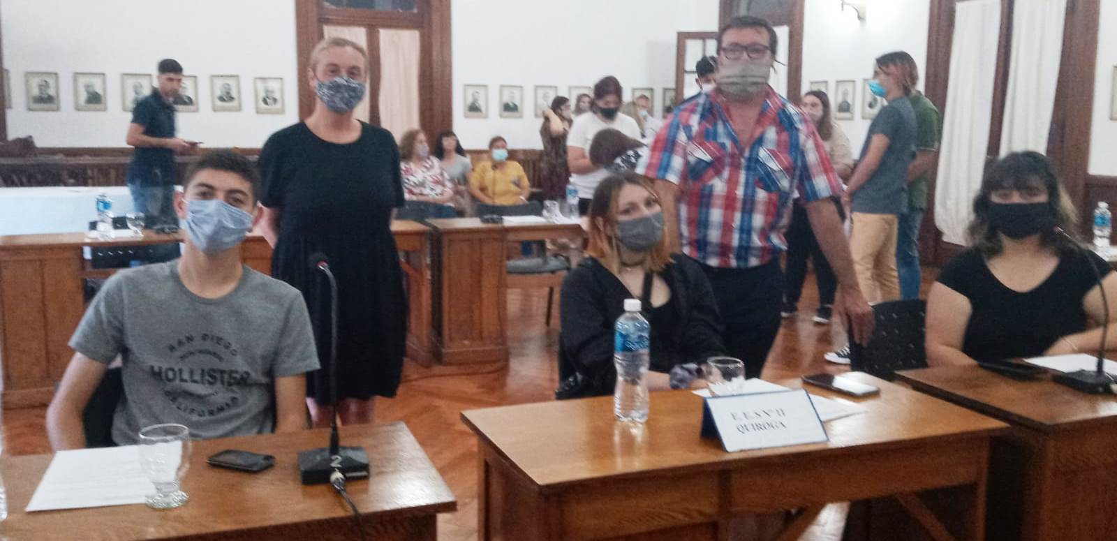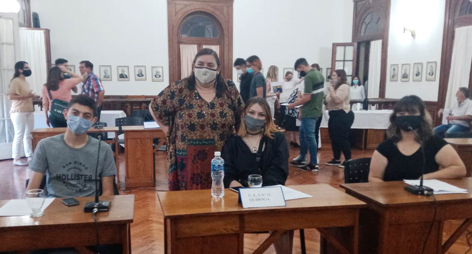 La sesión comenzó con la propuesta de los alumnos de la Escuela N° 11 de Facundo Quiroga. Acompañados de la profesora, Sabrina Messina, Roque Cingolani, Lucila Alcorta y Caterina Paradela explicaron la labor en pandemia e hicieron un ‘Reconocimiento del rol de las Comunidades Educativas. Baja la atenta presencia de la Directora, Anabella Lauría resaltaron la manera en se estudió durante las limitaciones por el coronavirus y quedó evidenciado, el compromiso de docentes, padres y los mismos alumnos para seguir con el ciclo lectivo y aprender.