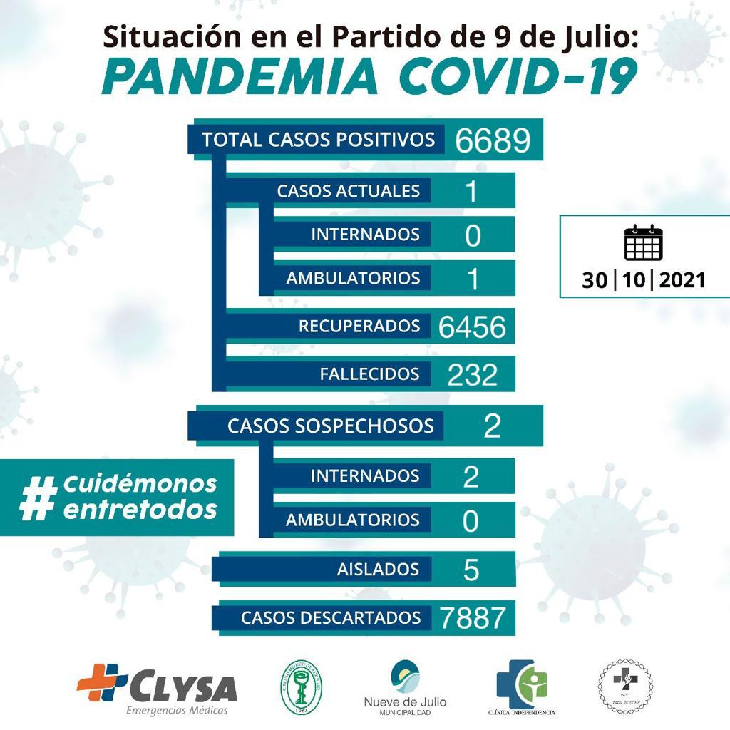 Nueve de Julio sigue sin presentar nuevos casos de Coronavirus con uno activo