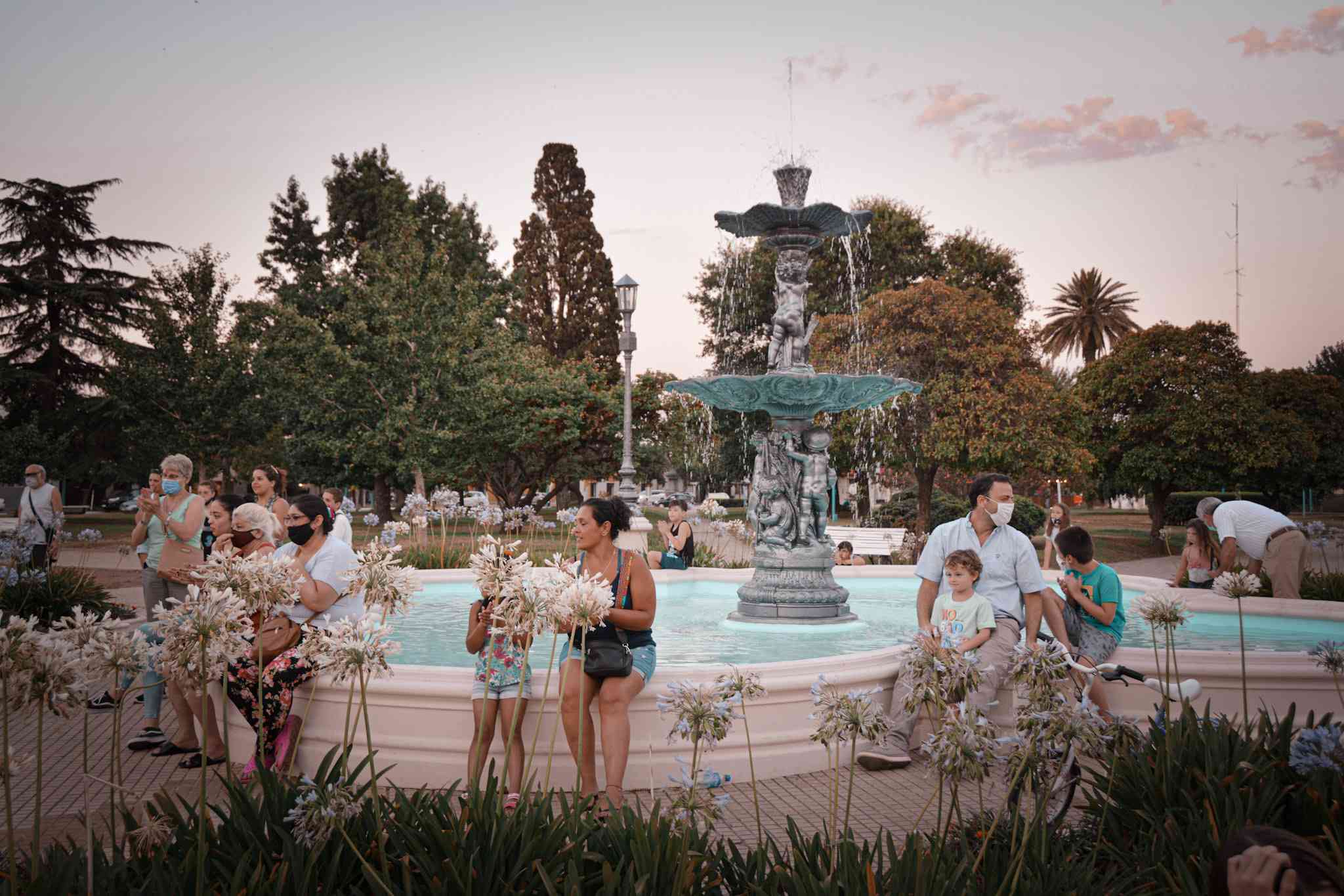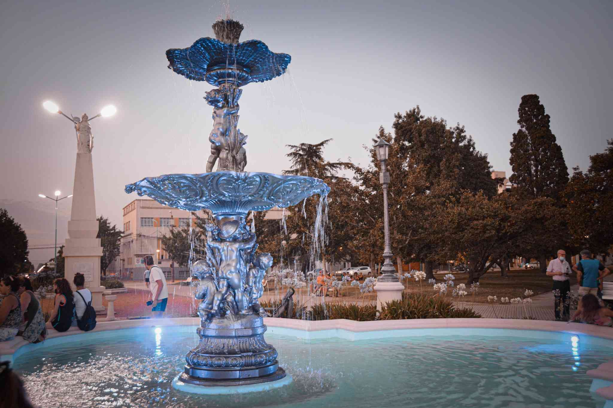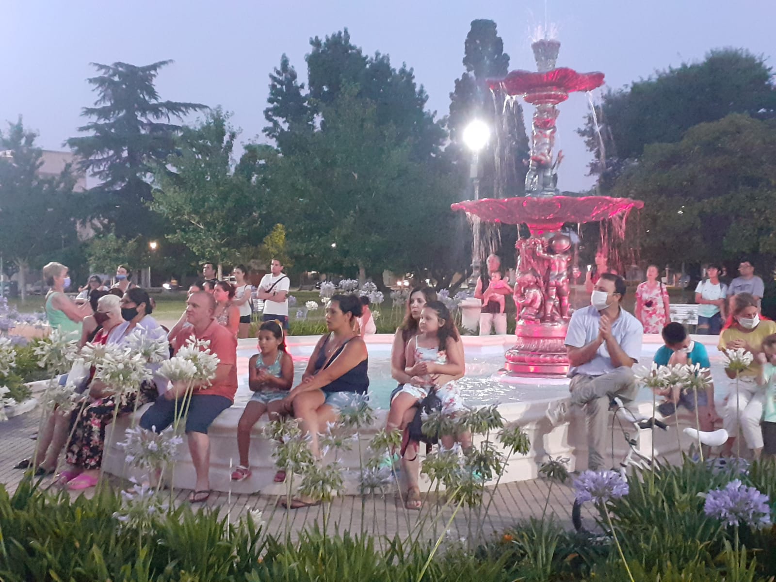 La plaza Belgrano se convirtió un paseo de atracción al mostrarse la fuente recuperada en su esplendor, tras obras de reparación, puesta en valor e iluminación.