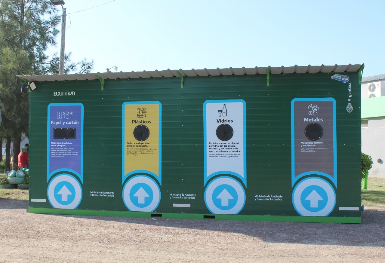 Entre los materiales recibidos se encuentran: El punto verde. El mismo en su interior tiene cuatro contenedores para albergar diferentes residuos (papel y cartón, plásticos, vidrios y metales) que se instalará en la plazoleta ubicada en la intersección de las avenidas San Martín y Schapira.