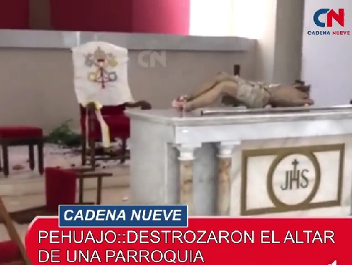 Esta tarde, el altar de la tradicional parroquia de San Anselmo de Pehuajó sufrió destrozos y la imagen de Jesús, fue descolgada de la pared del centro del mismo y con algunos deterioros quedó sobre el Altar Mayor.