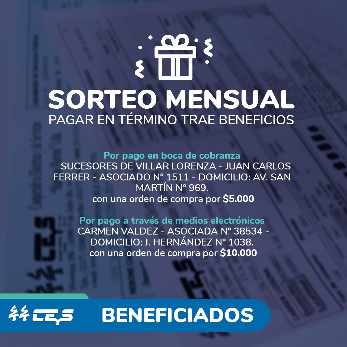 La CEyS llevó a cabo, como todos los meses, un nuevo sorteo de órdenes de compras, entre aquellos asociados que pagaron antes de la fecha de vencimiento las facturas de luz y gas natural.