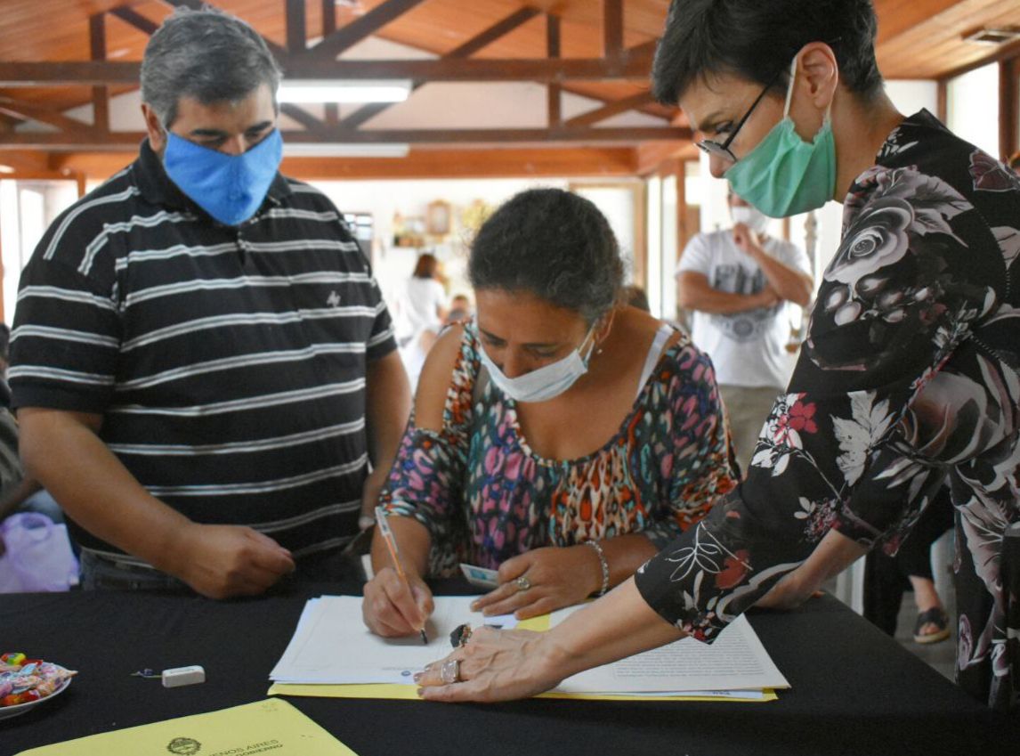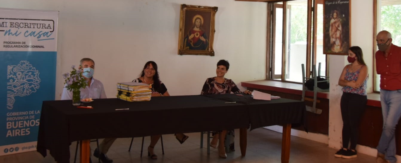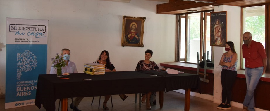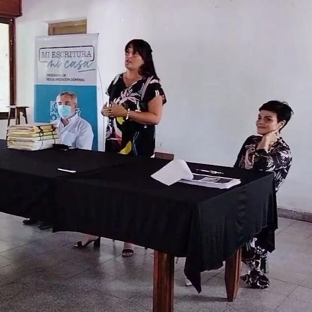 Este mediodía se realizó en Facundo Quiroga 21 familias fueron convocadas para firmas por sus Escrituras ante la Escribana Rosa Borda, de la Escribanía General de Gobierno, en un acto encabezado por el secretario de Gobierno de la comuna nuevejuliense, Jorge Della Rocca acompañado de la senadora María Elena Defunchio, el delegado Municipal de esta localidad, Juan Carlos Silva y los concejales Néstor Zabaleta, Natalia Bazterra y Cristian Martín.
