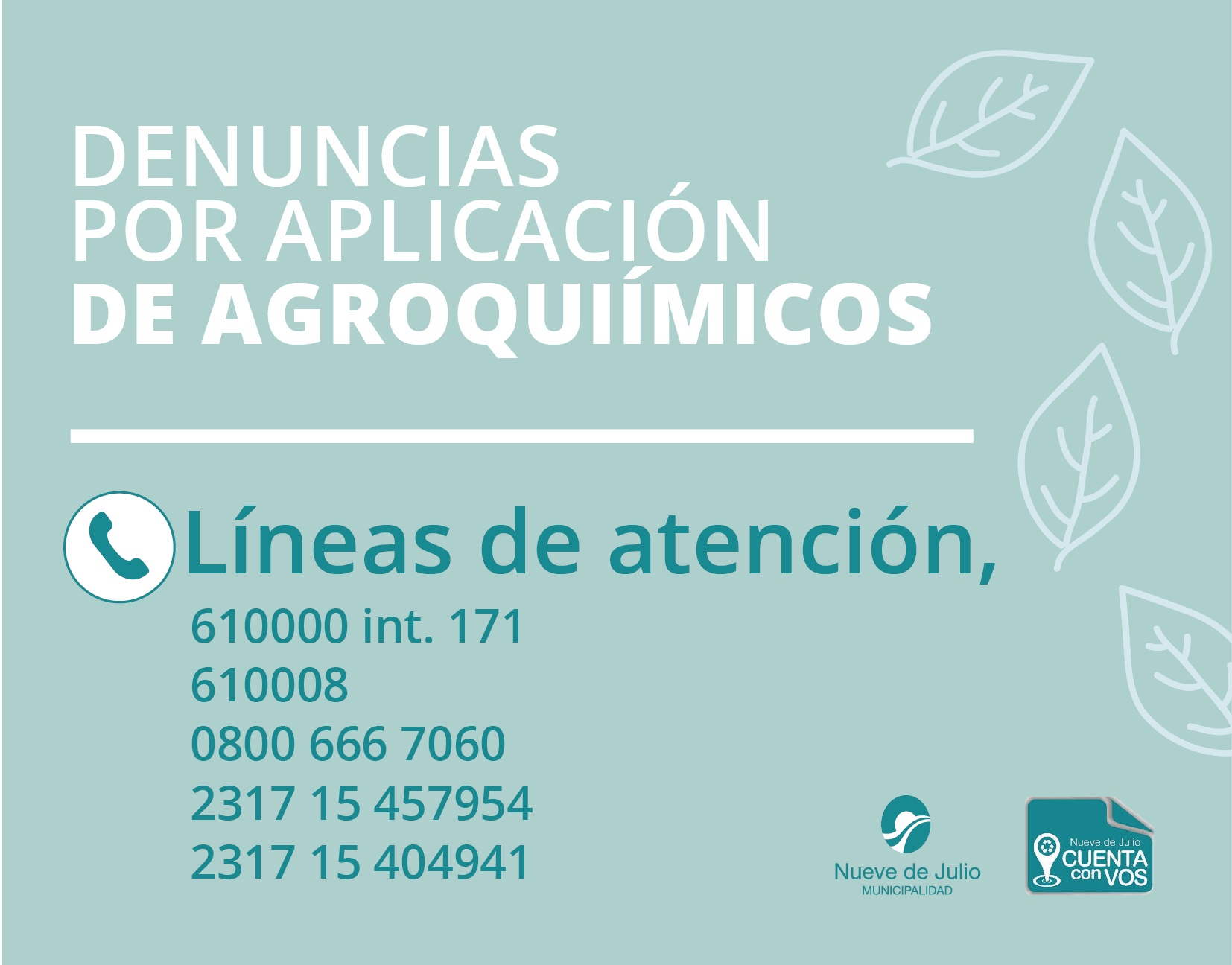 La Municipalidad de Nueve de Julio, a través de la Dirección de Gestión Ambiental, recuerda que –con el objeto de dar la respuesta inmediata que la temática amerita- el único medio habilitado para recepción de denuncias por temas relacionados a Agroquímicos, es el Centro de Monitoreo, que se encuentra disponible las 24 hs.