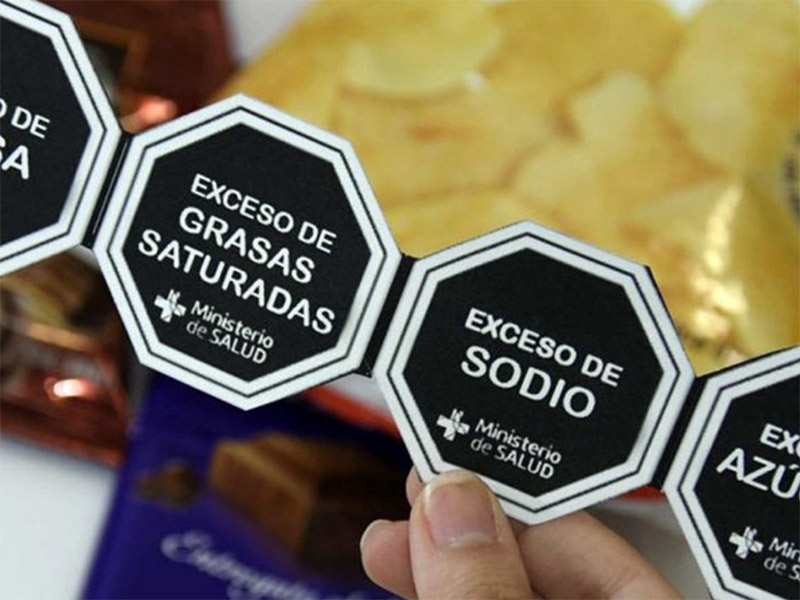 Los alimentos y bebidas analcohólicas envasados y comercializados con nutrientes críticos y valor energético superiores a los valores establecidos en la ley deben incluir en la cara principal un sello de advertencia indeleble por cada nutriente crítico en exceso, según corresponda: “Exceso en azúcares, en sodio, en grasas totales, en grasas saturadas y en calorías”.