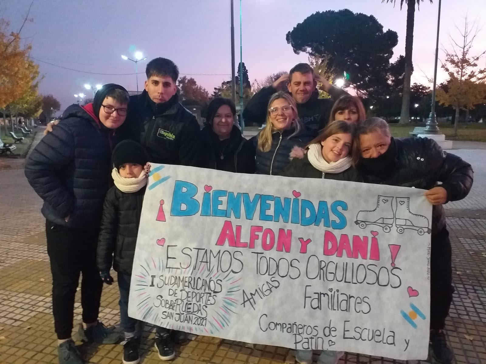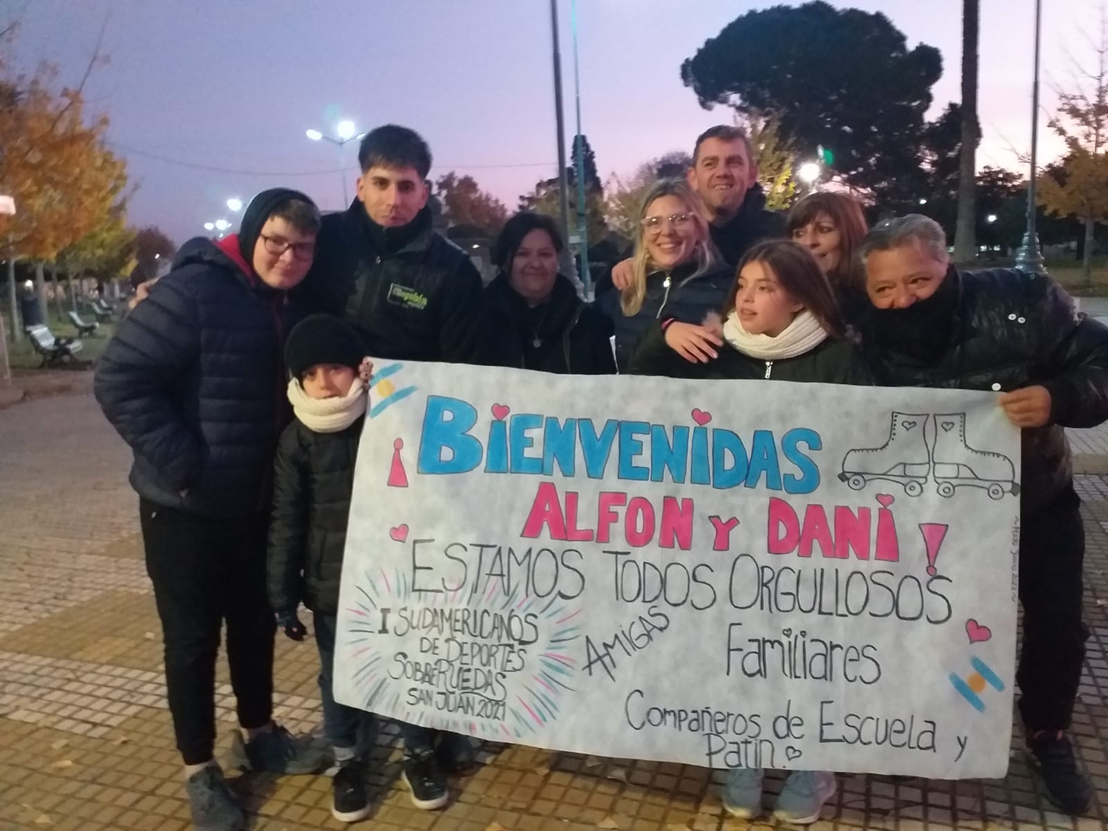 Alfonsina arribó a plaza Belgrano, donde familiares y amigos la esperaban. La fueron a buscar a Junín, junto a la profesora y guía que la acompañó, Daniela Tolosa, instructora de la Escuela de Patín del Club Atlético 9 de Julio. Hasta allí, ambas viajaron desde San Juan en un bus que iba a la Ciudad de Buenos Aires.