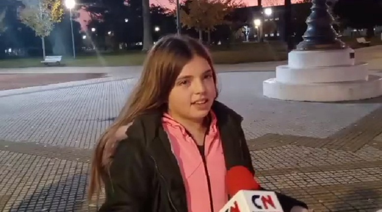 La niña nuevejuliense es recibida en plaza Belgrano tras ser aplaudida en el I Sudamericano de Deportes sobre ruedas en San Juan