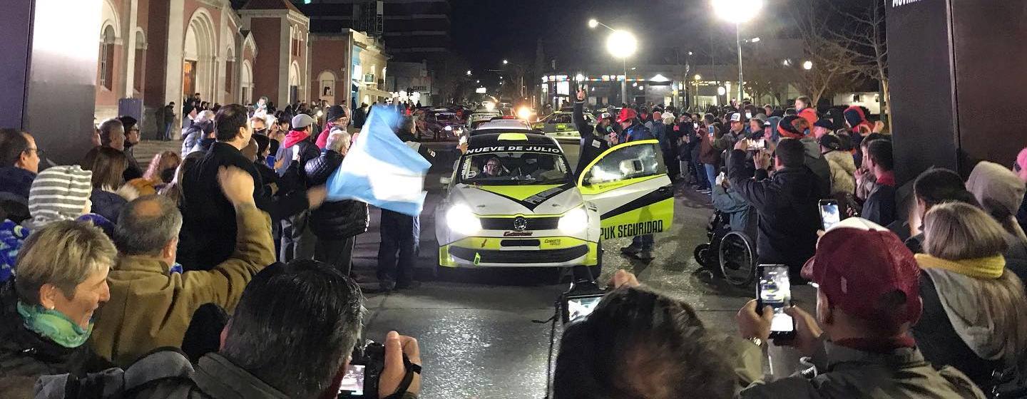 Luego, ya sobre la calle Libertad, se hizo un reconocimiento a Juan Carlos Pressavento, histórico y reconocido piloto de la ciudad de Nueve de Julio con trayectoria en el automovilismo nacional y rally en Argentina.