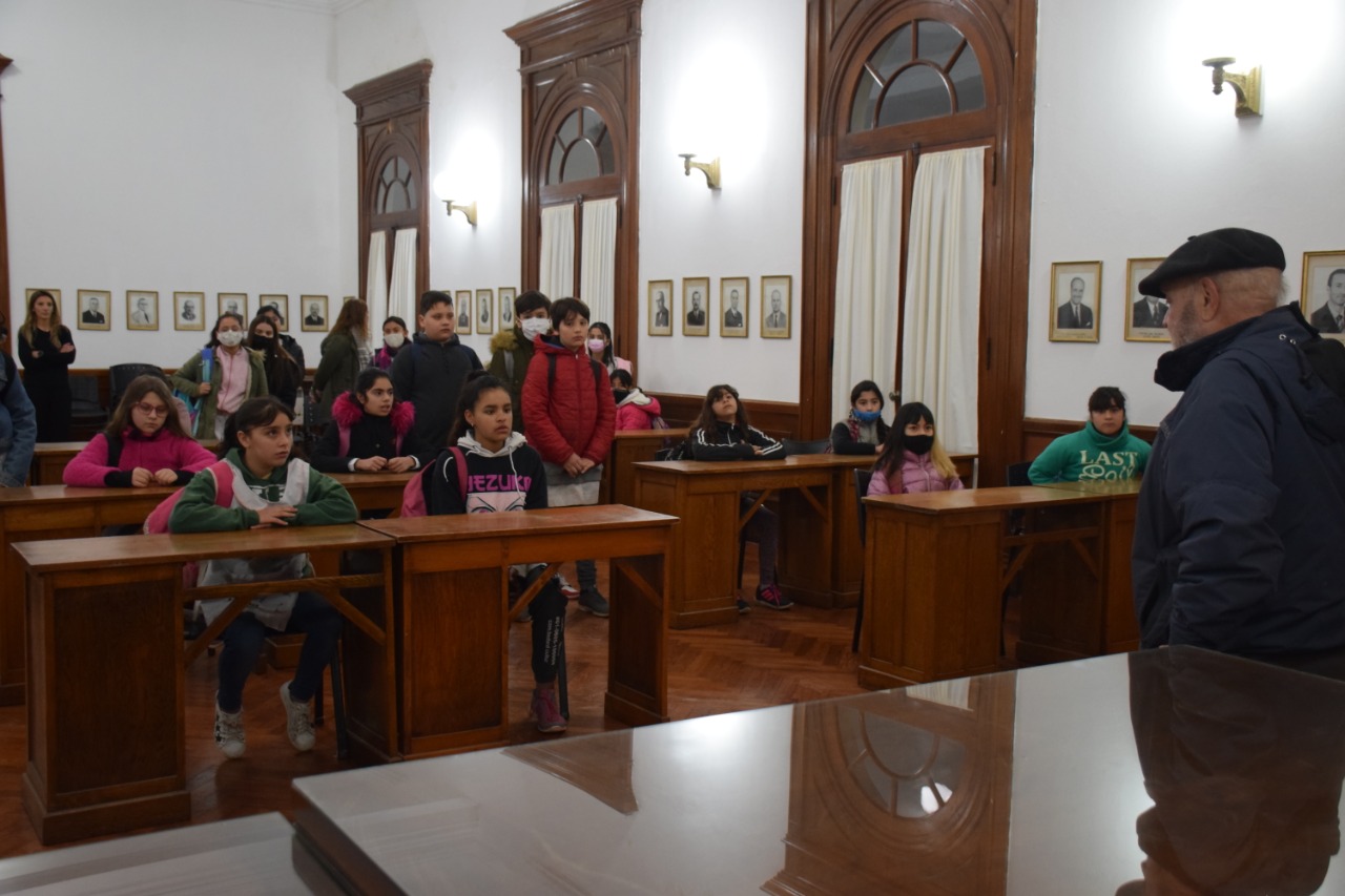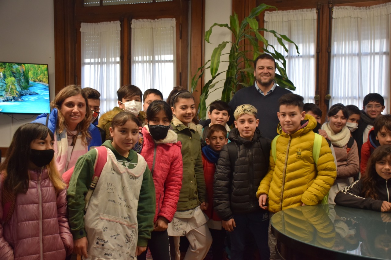 En la mañana de hoy, el Intendente Municipal de nueve de Julio, Mariano Barroso, recibió la visita de alumnos de 6to. Año “A” y “B” de la Escuela Nro. 3 “Juan Bautista Alberdi” de nuestra ciudad, quienes junto al director del Museo y Archivo Histórico, Roberto Castro, realizaron una visita guiada al Palacio Municipal, avanzando en el trabajo que se encuentran realizando sobre la división de poderes del Estado municipal.