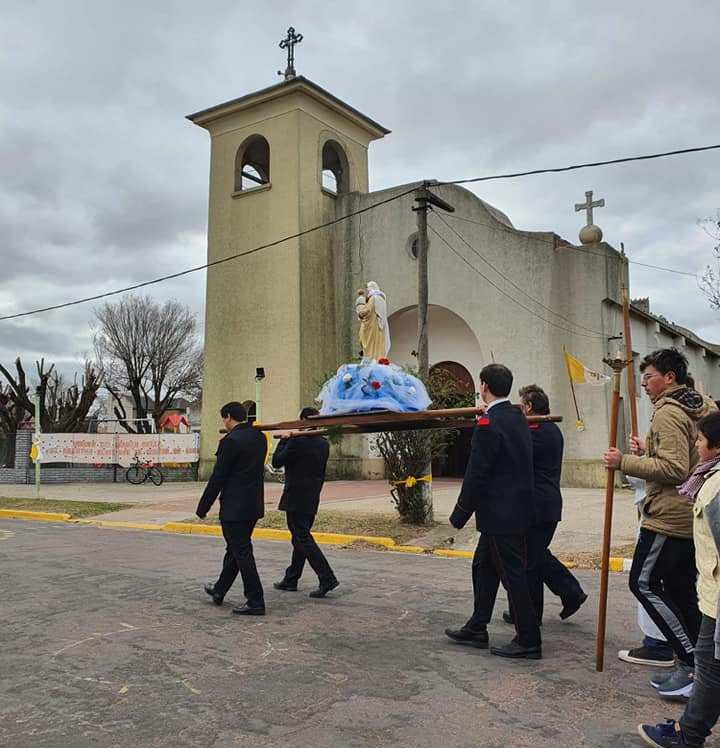 A partir de las 14,30 se llevó adelante una procesión encabezada por el Delegado Municipal Juan Carlos Silva acompañado de María José Gentile, quien recientemente ha dejado el cargo de Secretaria de Salud de la comuna de Nueve de Julio para comenzar la tarea de coordinadora jefe de gabinete y del cuerpo de Bomberos Voluntarios como sucede cada año.