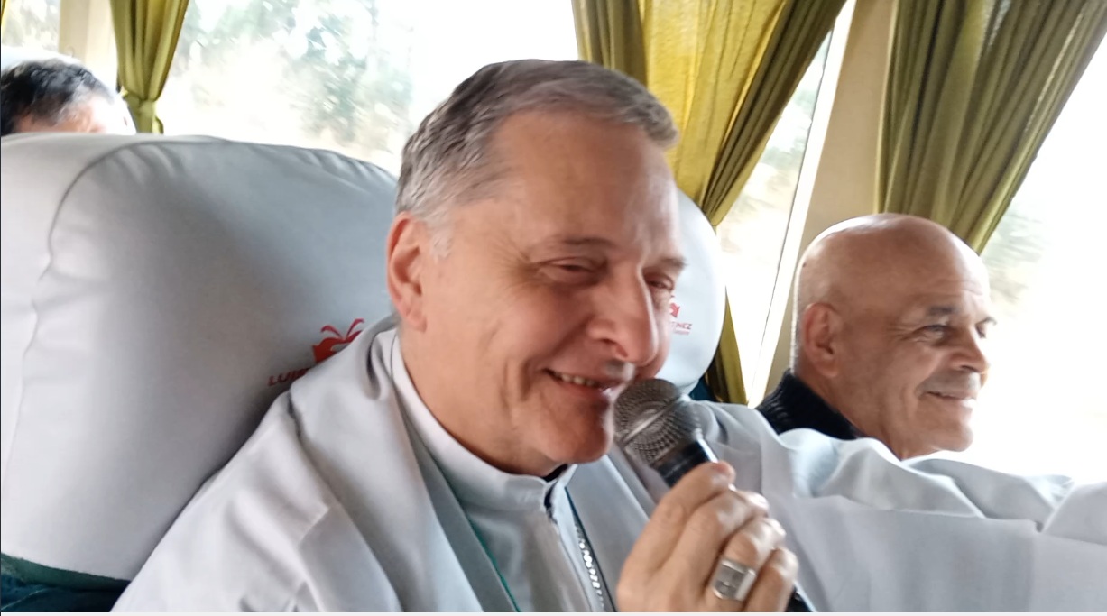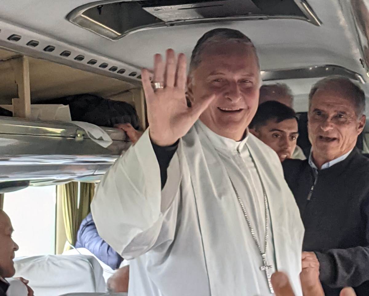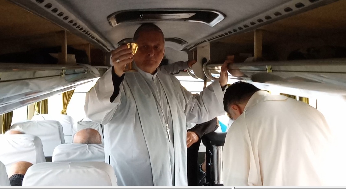 El obispo de Nueve de Julio dio misa por primera vez en un colectivo convocando a seguir a María