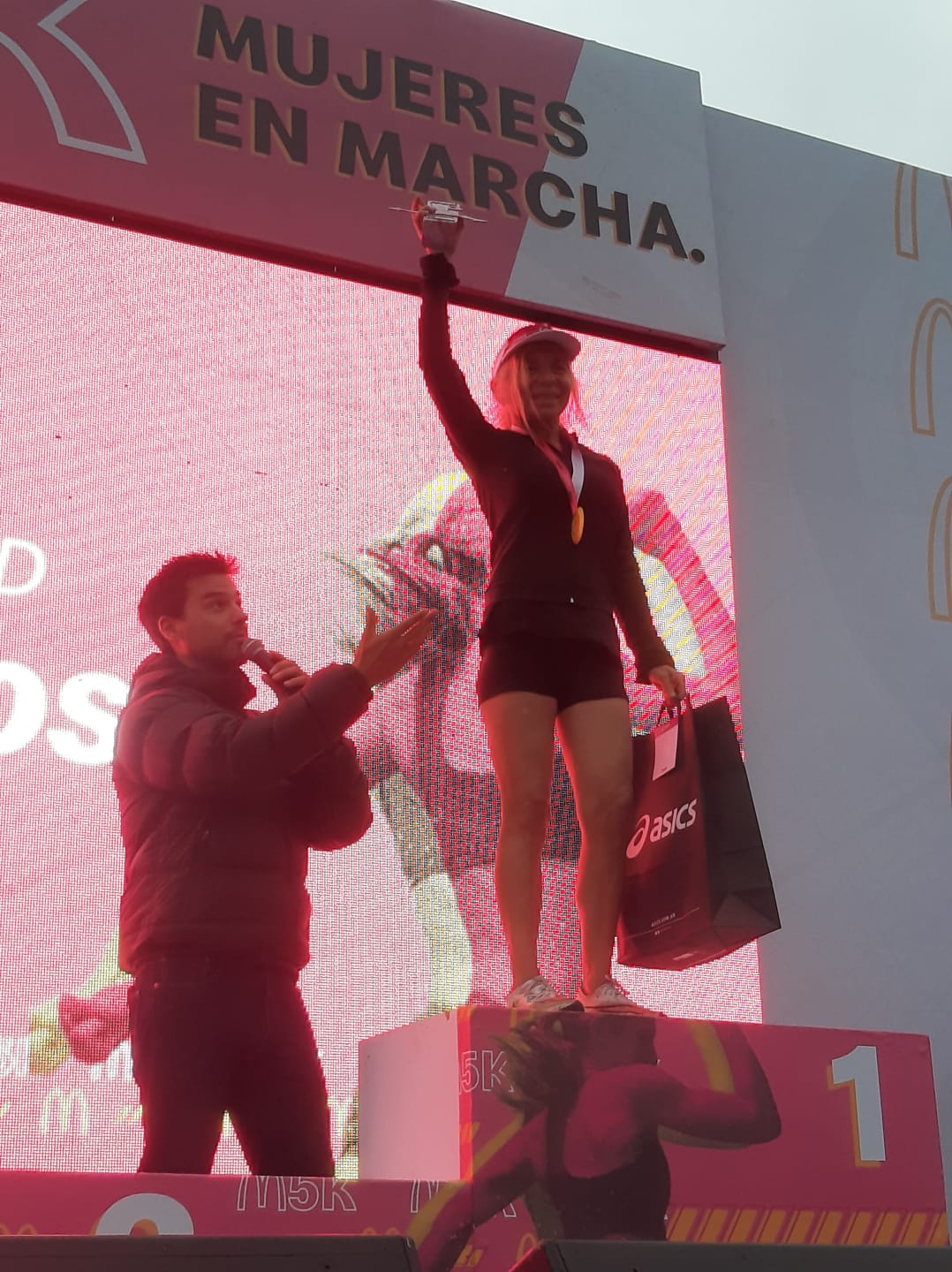 Se trata de Stella Maris Amado quien de entre 10000 corredoras donde solo 10 recibieron premio por mejores en cada categoría, una de las que hizo podio, ella fue.