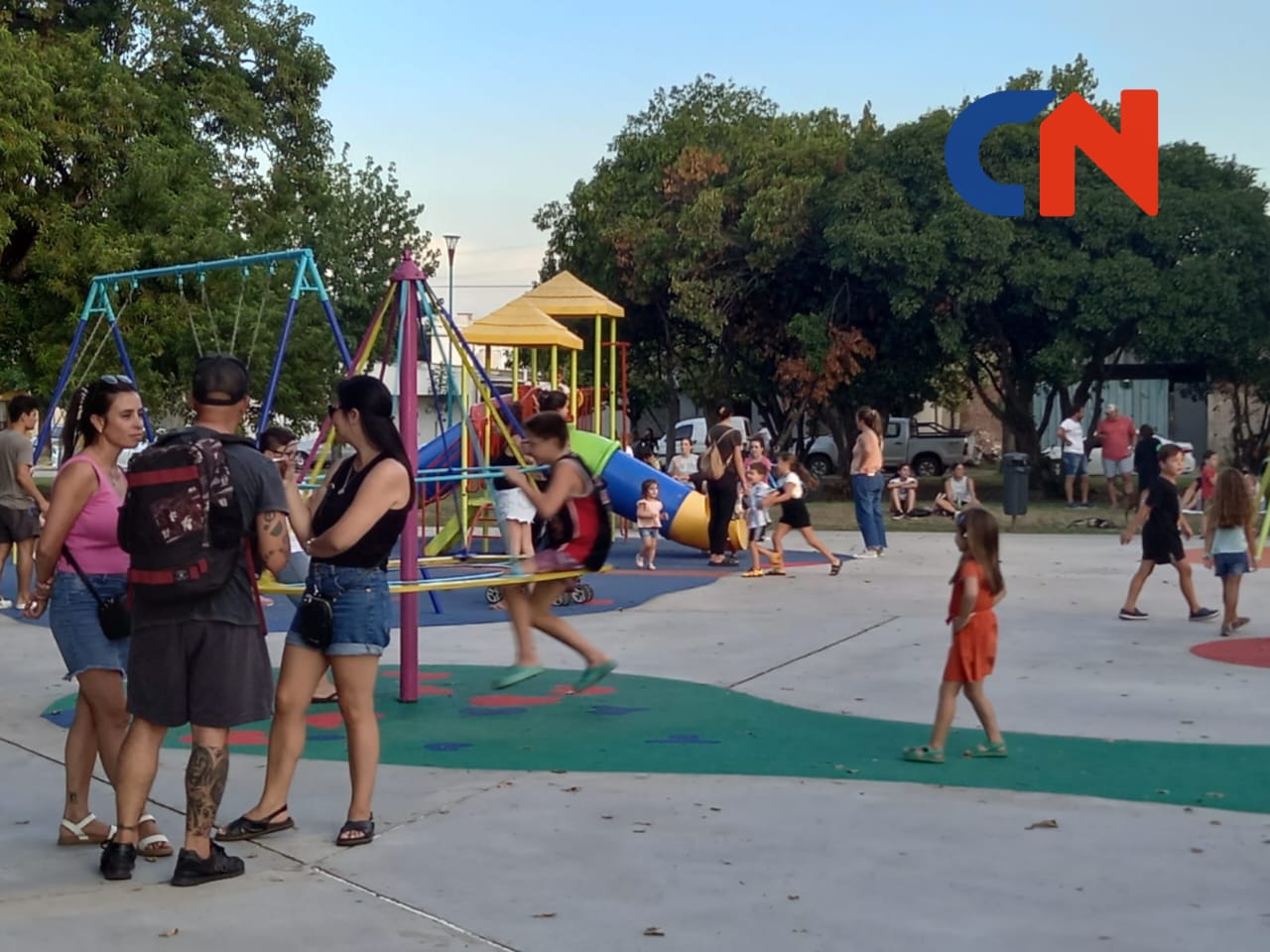 Funcionarios municipales, encabezado por la Jefa de Gabinete, María José Gentile acompañaron el encuentro con los vecinos, que celebraron especialmente el colorido y la nueva vida que entrega al barrio la remodelada plaza.