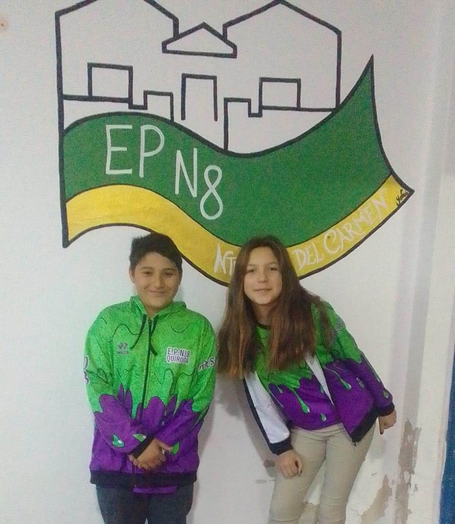 Los dos egresados del último año de la Escuela Primaria N° 8 de Facundo Quiroga presentaron sus camperas de fin de ciclo y paso a la secundaria.