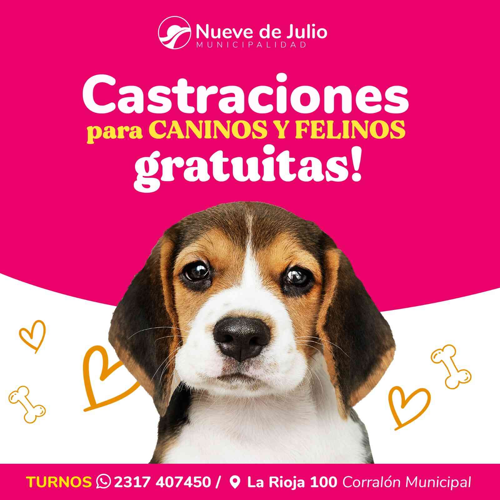 A través de la dirección general del Albergue Canino y Zoonosis, se continúa desarrollando la campaña de castraciones de caninos y felinos, en el predio del ex Corralón Municipal, de lunes a viernes, de 8 a 13 hs.; recomendándose que quienes deseen efectuar consultas o solicitar turnos, deben comunicarse con el celular 2317-407450; a excepción de los gatos machos, que se atienden sin turno.