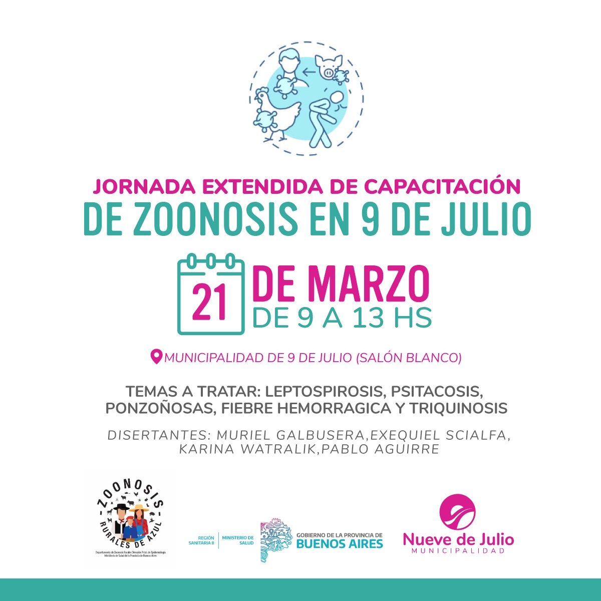 La misma se extenderá en el horario de 9 a 13 hs., en el Salón Blanco de la Municipalidad de Nueve de Julio, con una importante agenda de temas que comprenderán aspectos de leptospirosis, psitacosis, ponzoñosas, fiebre hemorrágica y triquinosis.