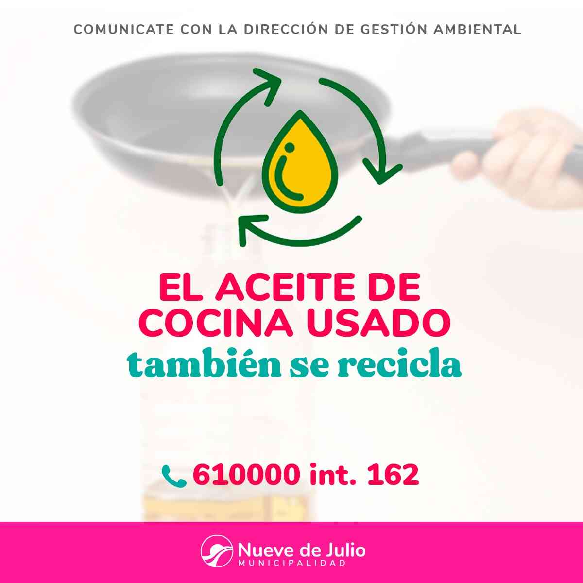 La Municipalidad de Nueve de Julio, a través de la Dirección de Gestión Ambiental recuerda que es obligatorio para los comercios gastronómicos la aplicación del Programa de Recuperación de Aceite Vegetal Usado, mientras que se invita a los generadores particulares a que se sumen a este programa.