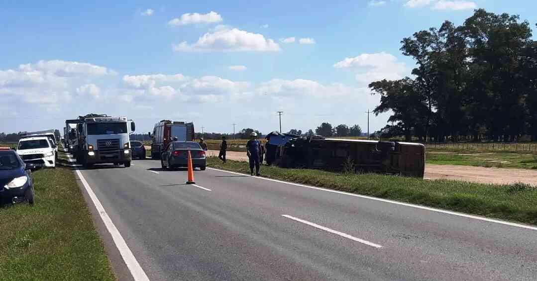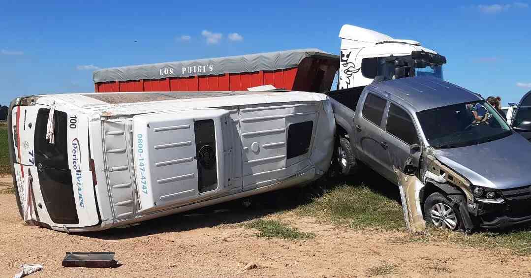 Cerca de la hora 14 de este Jueves Santo, y donde se recomienda circular con sumo cuidado ante el alto tránsito por los seis días de actividad no oficial, en jurisdicción de Suipacha se produjo un triple choque.El siniestro ocurrió a la altura del kilómetro 115,400 cuando una pick up Volkswagen Amarok, color gris, que remolcaba a un furgón Mercedes Benz Sprinter, ambos pertenecientes a una empresa de turismo, al intentar sobrepasar a un camión de gran porte, el conductor de la pick up pierde el control del rodado, generando una maniobra de “tijera” con la Sprinter que remolcada donde luego de rozar el lateral del semirremolque, vuelca sobre la zona de préstamo y banquina de la mano contraria a la que circulaba.