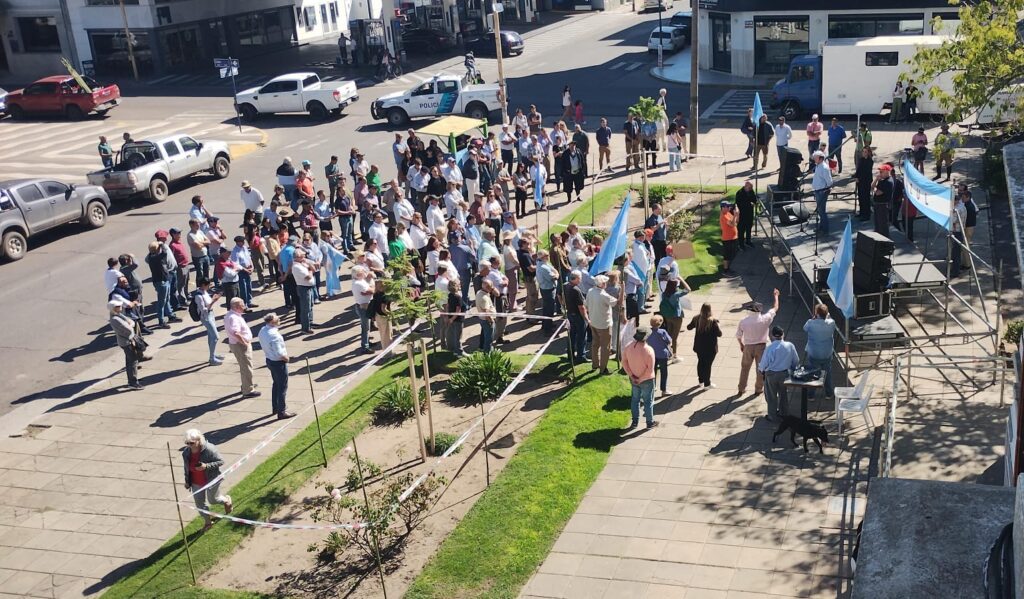 Pero la iniciativa no logró una convocatoria significativa: apenas unas 50 personas se pueden ver en la foto del palco montado en una plaza de Azul para el acto central del evento, en el que Boubee admitió: “somos pocos pero valemos”.