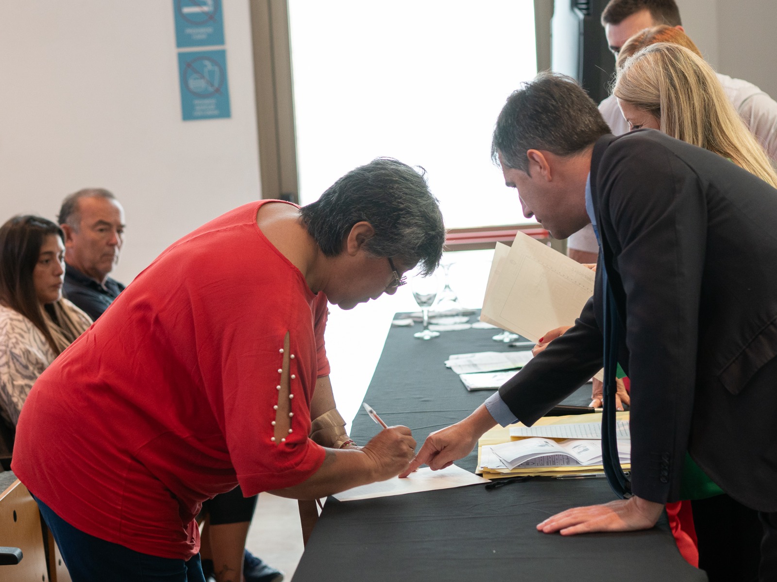 El intendente Franco Flexas acompañado por la Escribana General de Gobierno de la Provincia de Buenos Aires, Karina Siri, realizaron otras 23 firmas de escrituras a vecinos del distrito.