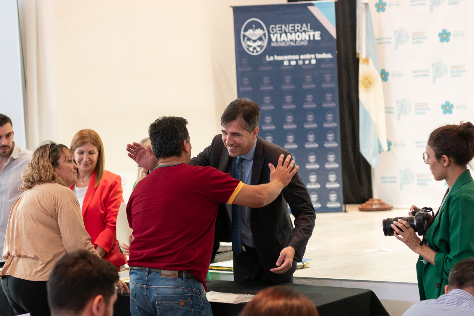 En el acto en total se firmaron 46 títulos de propiedad. 3 familias pertenecen a la localidad de Baigorrita del Plan PROCASA 3 construidas en el año 1990. 1 familia del plan familia propietaria (lote entregado en 1999). 6 familias correspondiente al plan familias propietaria (bloqueras 9 ubicadas en el Bo. Juan el Bueno, construido en el año 1998. 9 familias al plan federal construido en el bo. María Luz Mujica construidas en 2005, 1 familia al plan techo del bo. Juan D. Perón y 1 familia al plan familia propietaria del bo. Juan D. Perón año 2007.