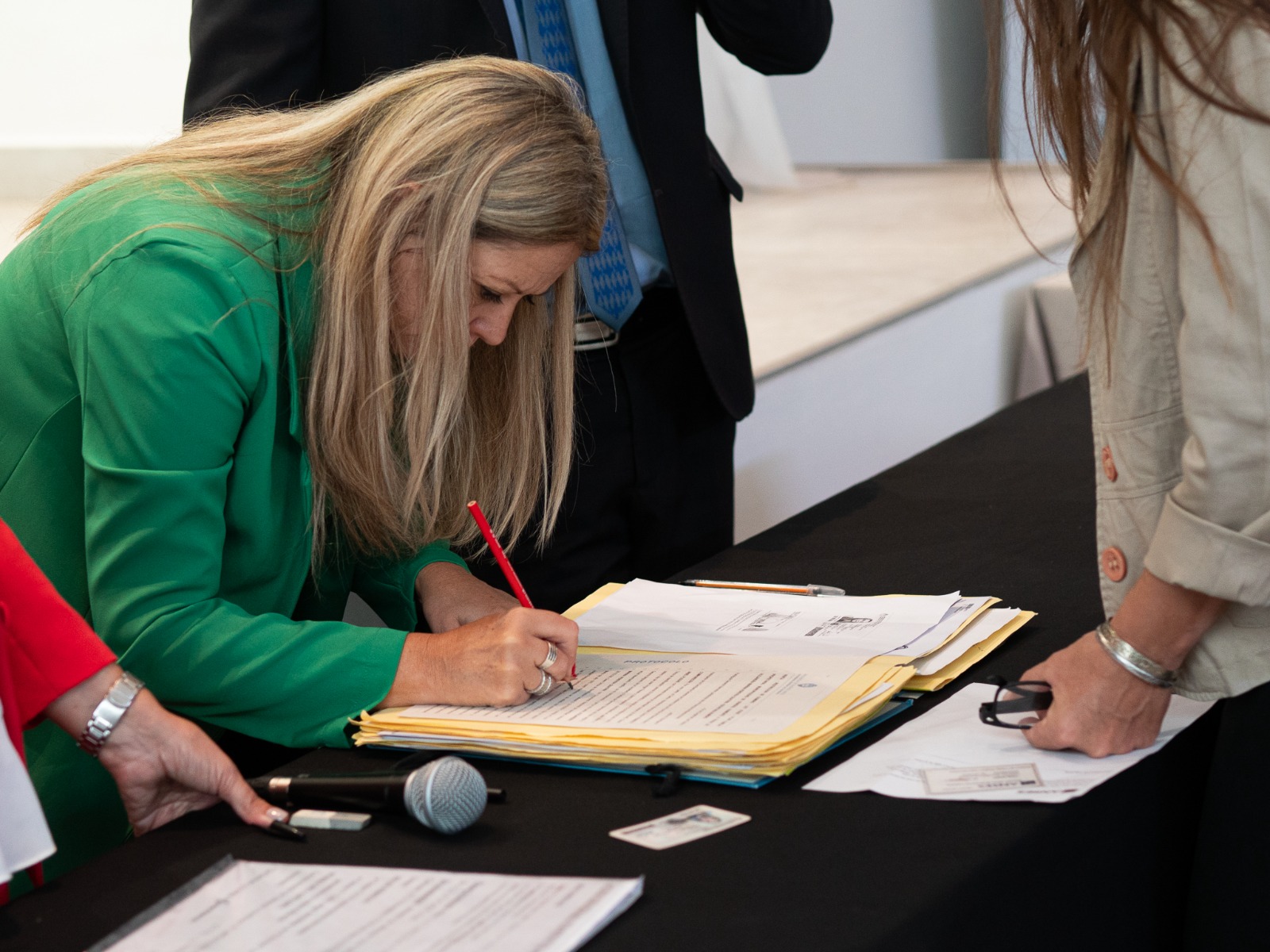 El intendente Franco Flexas acompañado por la Escribana General de Gobierno de la Provincia de Buenos Aires, Karina Siri, realizaron otras 23 firmas de escrituras a vecinos del distrito.