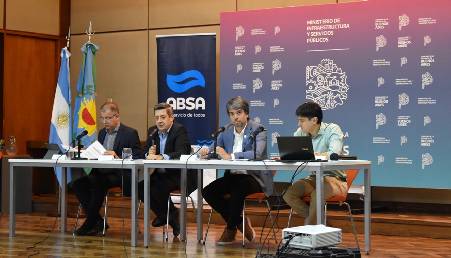 Este lunes, en el Ministerio de Infraestructura y Servicios Públicos, se llevó a cabo la Audiencia Pública para actualizar la tarifa de ABSA, que brinda servicios de agua y cloacas en 92 localidades de la provincia de Buenos Aires, y de la que participaron el subsecretario de Recursos Hídricos, Néstor Álvarez, el presidente de la empresa, Hugo Obed, y el presidente de la Autoridad del Agua (ADA), Damián Costamagna.