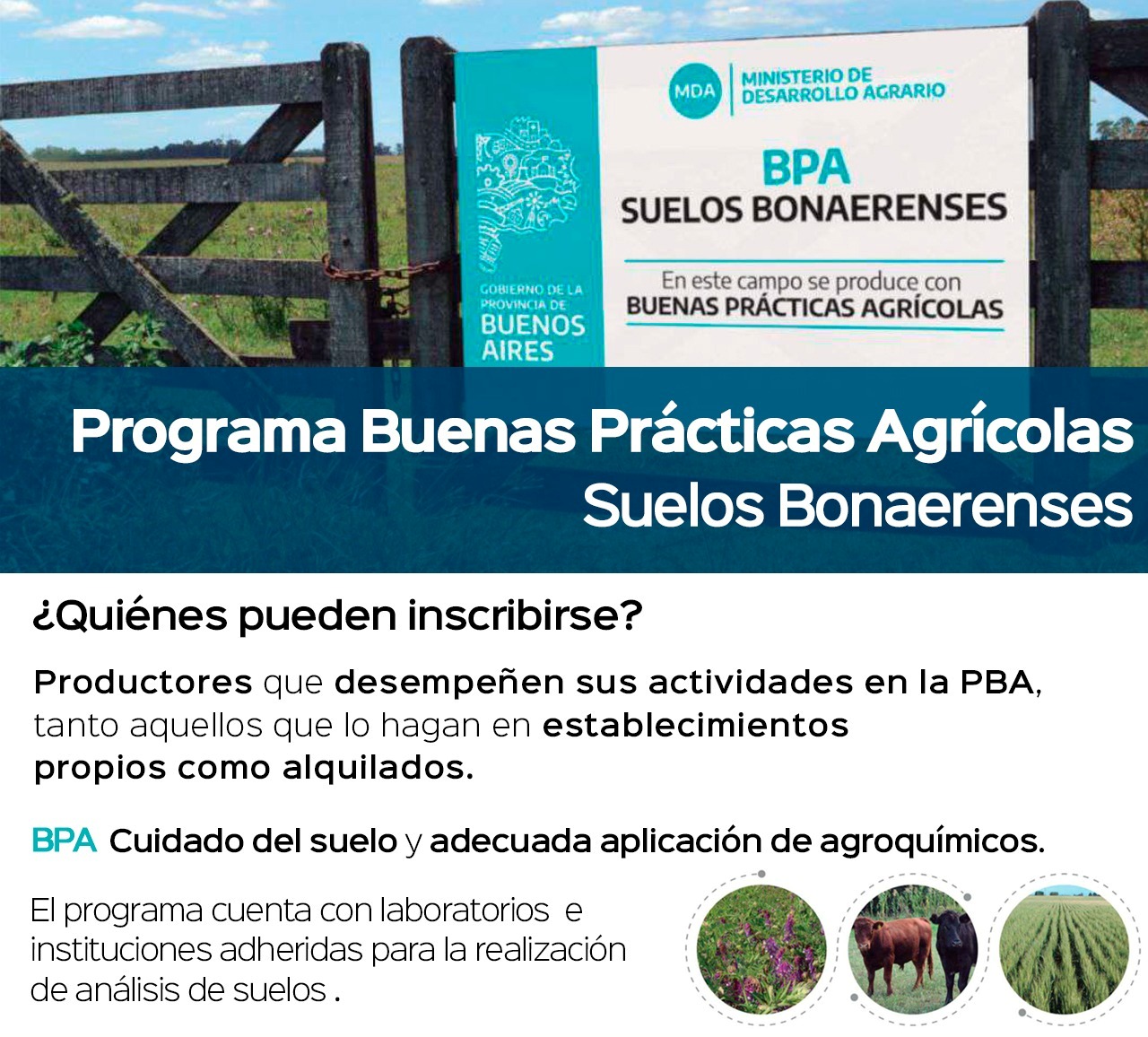La Municipalidad de General Villegas a través de la Secretaría de Promoción y Producción promueve el programa del Ministerio de Desarrollo Agrario (MDA) de la Provincia de Buenos Aires que tiene por objetivo que los productores de cultivos extensivos puedan realizar, mediante la implementación de Buenas Prácticas Agrícolas, un manejo productivo que mejore y conserve los suelos de la provincia de Buenos Aires.