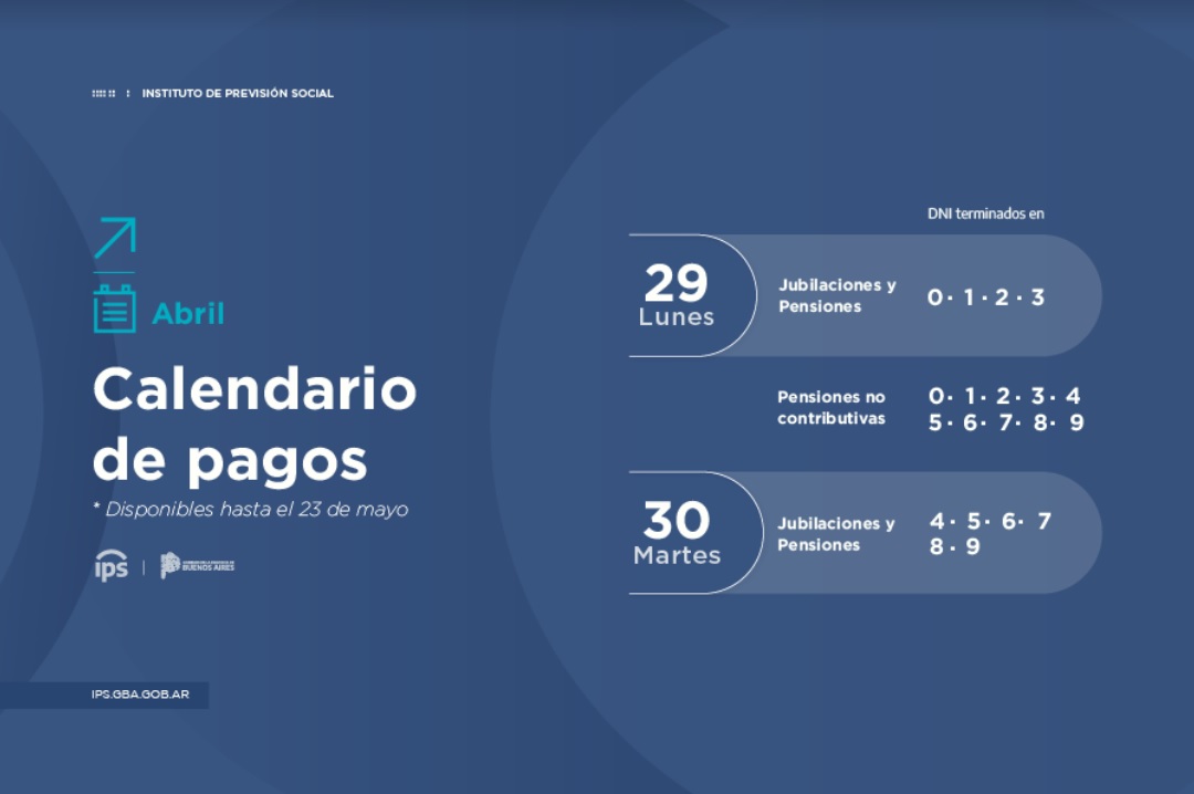 El Instituto de Previsión Social (IPS) de la provincia de Buenos Aires ha anunciado que los jubilados y pensionados comenzarán a percibir los haberes correspondientes al mes de abril a partir del próximo lunes 29, de acuerdo con el cronograma establecido por la institución.