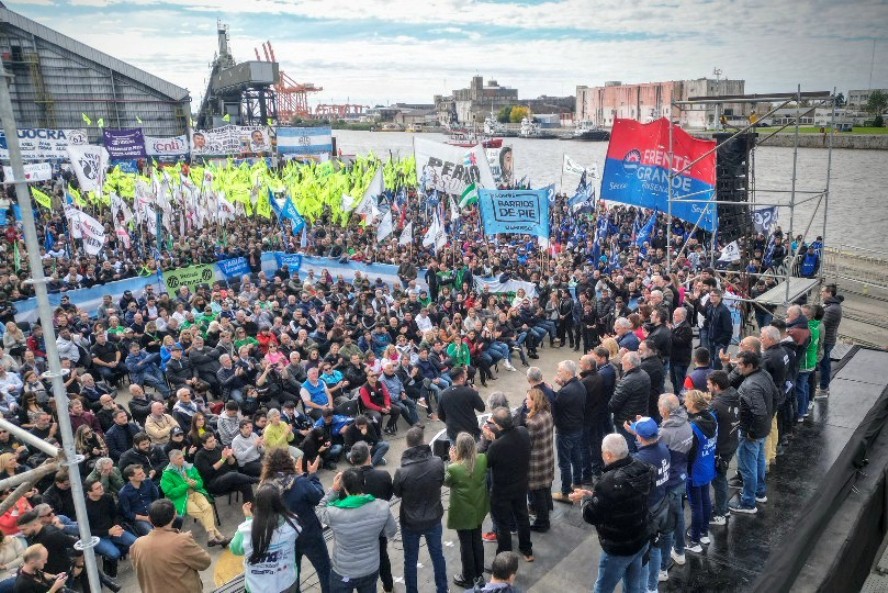 El gobernador de la provincia de Buenos Aires, Axel Kicillof, lideró este sábado un acto multisectorial en el Puerto La Plata, denominado “Soberanía, producción y trabajo”. La reunión congregó a trabajadores y trabajadoras de la región capital bonaerense, quienes se manifestaron en defensa de sus derechos y para exigir el inicio del dragado del Canal Magdalena. El evento tuvo lugar en la localidad de Ensenada y contó con la presencia de la vicegobernadora Verónica Magario, así como los intendentes de La Plata, Julio Alak; de Ensenada, Mario Secco; de Berisso, Fabián Cagliardi; y de Avellaneda, Jorge Ferraresi.