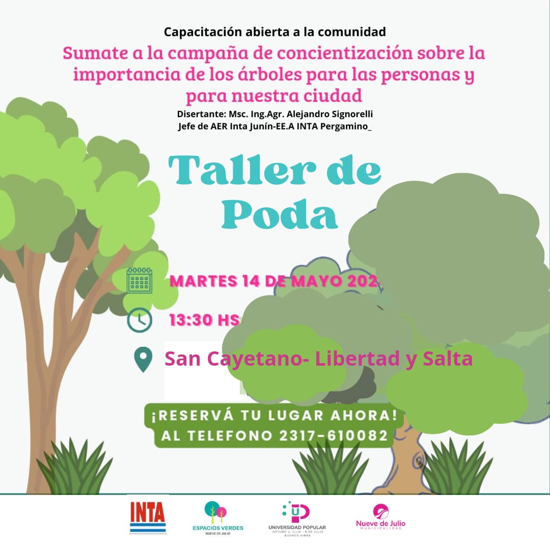 La Municipalidad de Nueve de Julio, a través de la Universidad Popular, la Dirección de Espacios Verdes y el INTA, recuerda que, en la jornada de mañana, martes 14, se ofrecerá una capacitación abierta a la comunidad, a las 13.30 hs., en el nuevo ámbito del Centro de Desarrollo Socio Productivo “San Cayetano”.