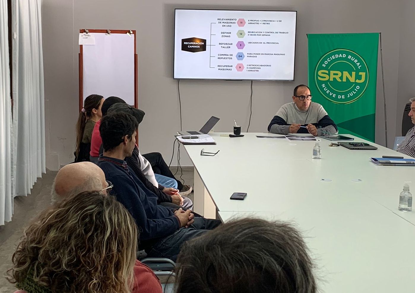 El secretario de Obras y Servicios Públicos de la Municipalidad de Nueve de Julio, Juan Pablo Boufflet, sostuvo una significativa reunión con la Comisión Directiva de la Sociedad Rural y productores del distrito.
