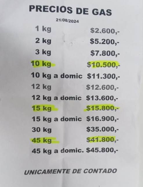 Según De Sogo, la resolución gubernamental ha llevado a un aumento significativo en el precio de las garrafas, afectando tanto el gas butano como el propano. En su empresa, Carlos De Sogo, los precios actuales son los siguientes: la garrafa de 10 kg se vende a 10,500 pesos, la de 15 kg a 15,800 pesos, y las microgarrafas de 1 kg, 2 kg y 3 kg tienen precios de 2,600 pesos, 5,200 pesos y 7,200 pesos respectivamente. La garrafa de 45 kg, aún disponible en el mercado, cuesta 41,800.