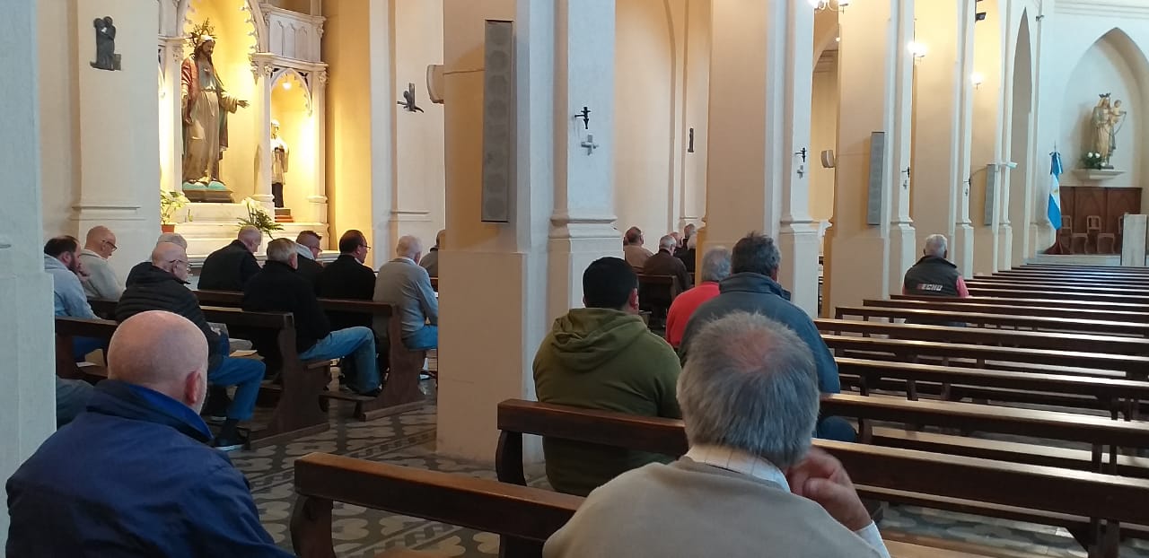 Este sábado, la corriente de vida Madrugadores del 9 llevó adelante otro encuentro de oración en la Catedral Santo Domingo de Guzmán, donde cuarenta varones se reunieron desde las 7 de la mañana para rezar el rosario en comunidad.