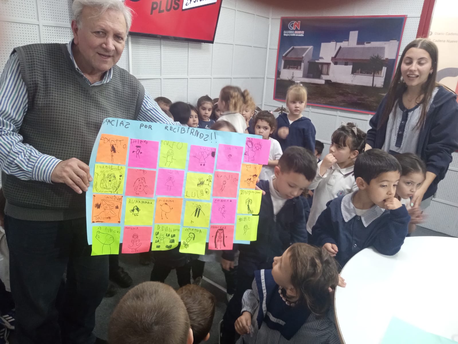 Poco después, llegó el segundo grupo, encabezado por Ayelén Milocco, también acompañado por la directora y la preceptora. Este gesto refleja el compromiso y la atención que las autoridades del colegio brinda a sus alumnos. Al igual que sus compañeritos anteriores, estos pequeños también asumieron el papel de periodistas y compartieron que sus padres escuchaban radio, ya sea en el auto, en celulares o tabletas, disfrutando de música, noticias y deportes. Como recuerdo de su visita, dejaron una lámina con sus nombres, escritos por ellos mismos y sus dibujos.