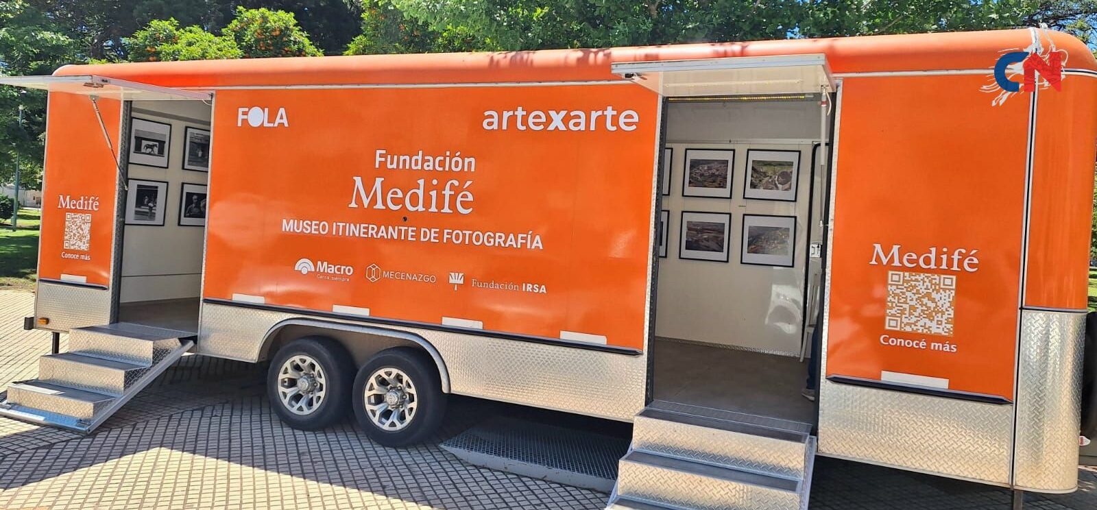 En la vereda de la Plaza Belgrano, frente al Palacio Municipal de la Ciudad de Nueve de Julio, se encuentra desde ayer el trailer Cultural del Museo Itinerante de Fotografía Argentina.