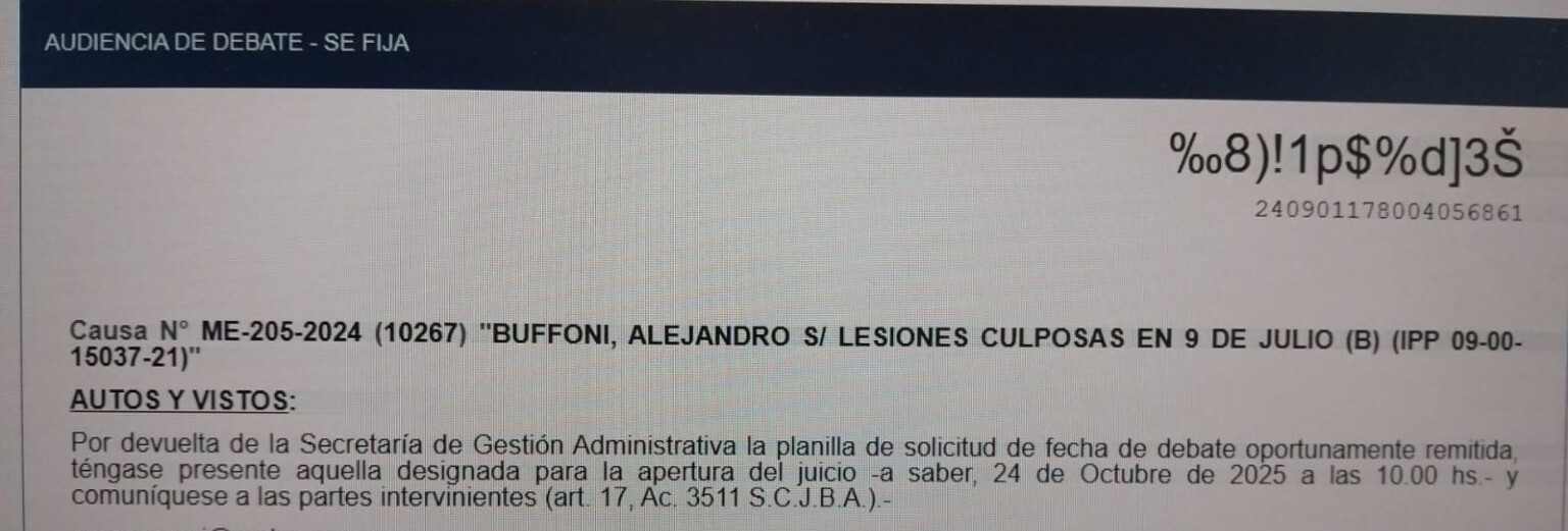 El juicio oral previsto para el 24 de octubre será esencial para determinar las responsabilidades de Buffoni, tanto desde el punto de vista penal como civil.