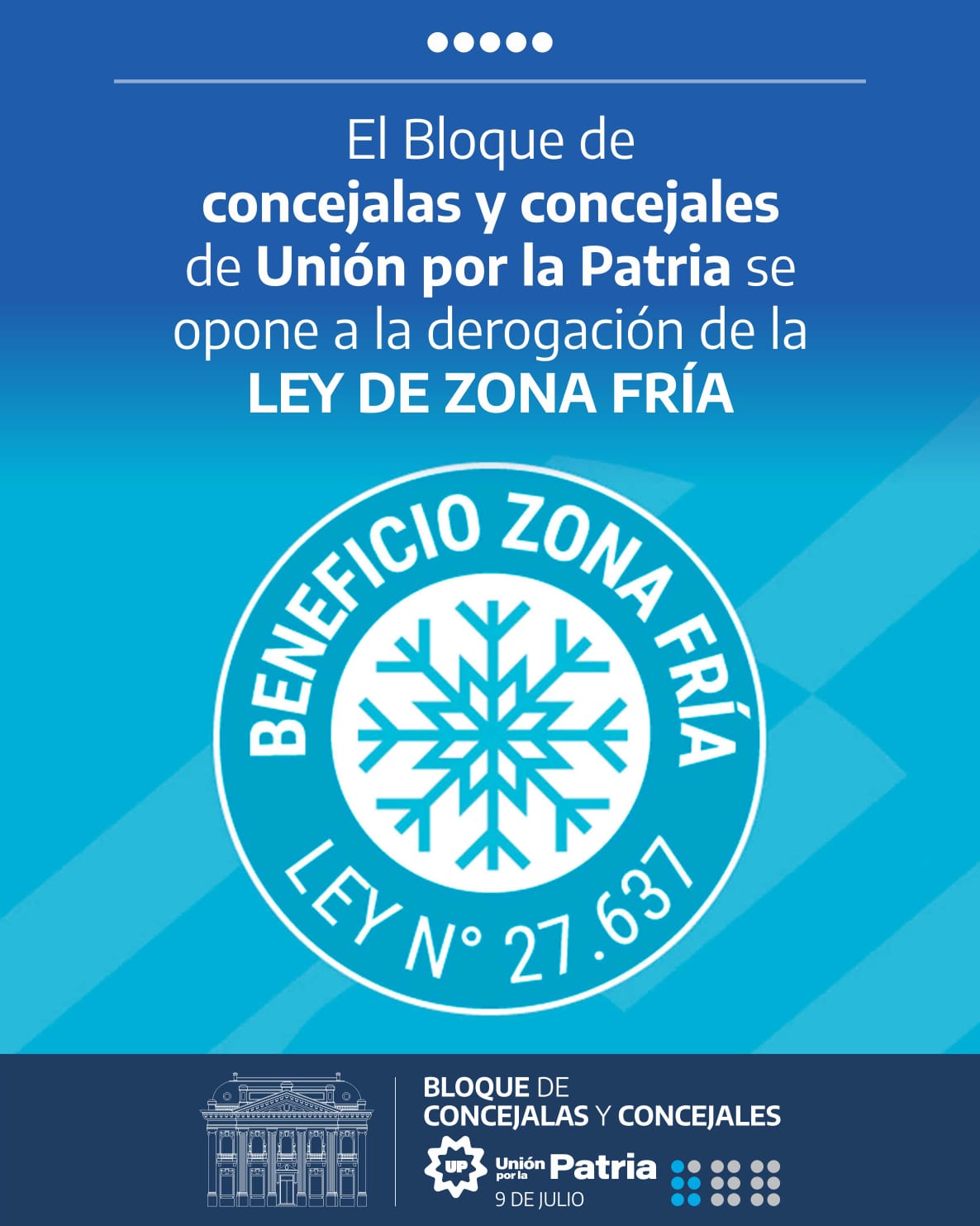 El Bloque de concejalas y concejales de Unión por la Patria presentó un Proyecto de Resolución en el que solicita la eliminación del artículo 72 del Proyecto de Ley de Presupuesto 2026, enviado al Congreso de la Nación. Dicho artículo propone la derogación de la Ley 27.637, conocida como la “Ley de Zona Fría”, que amplió las regiones alcanzadas por la Ley 25.565 de 2002, beneficiando a 90 municipios de la provincia de Buenos Aires, entre ellos 9 de Julio.