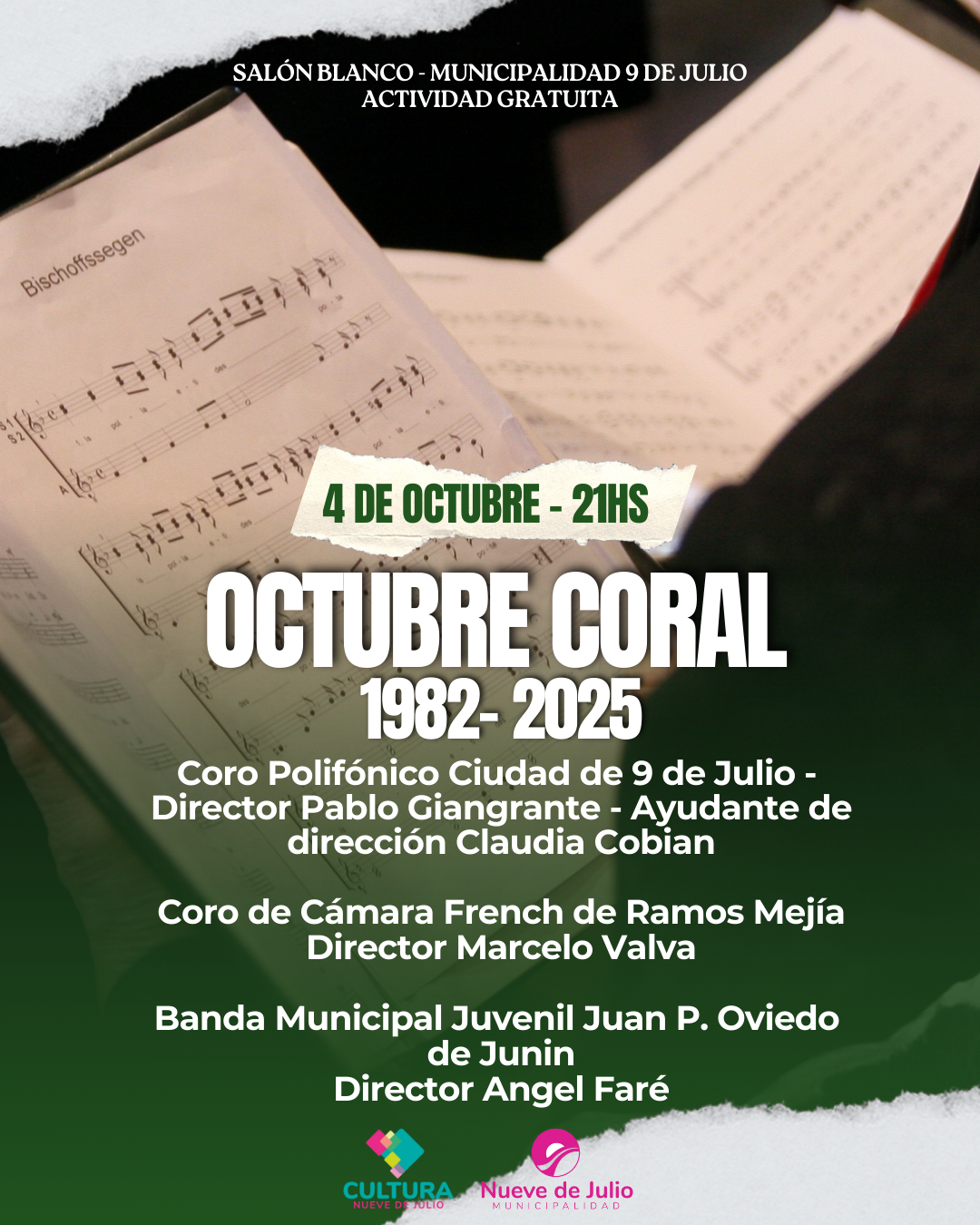 La Dirección General de Cultura destaca y agradece el compromiso del Coro Polifónico Ciudad de 9 de Julio, que una vez más brinda a la comunidad esta oportunidad única de disfrutar de una noche llena de música y emoción.