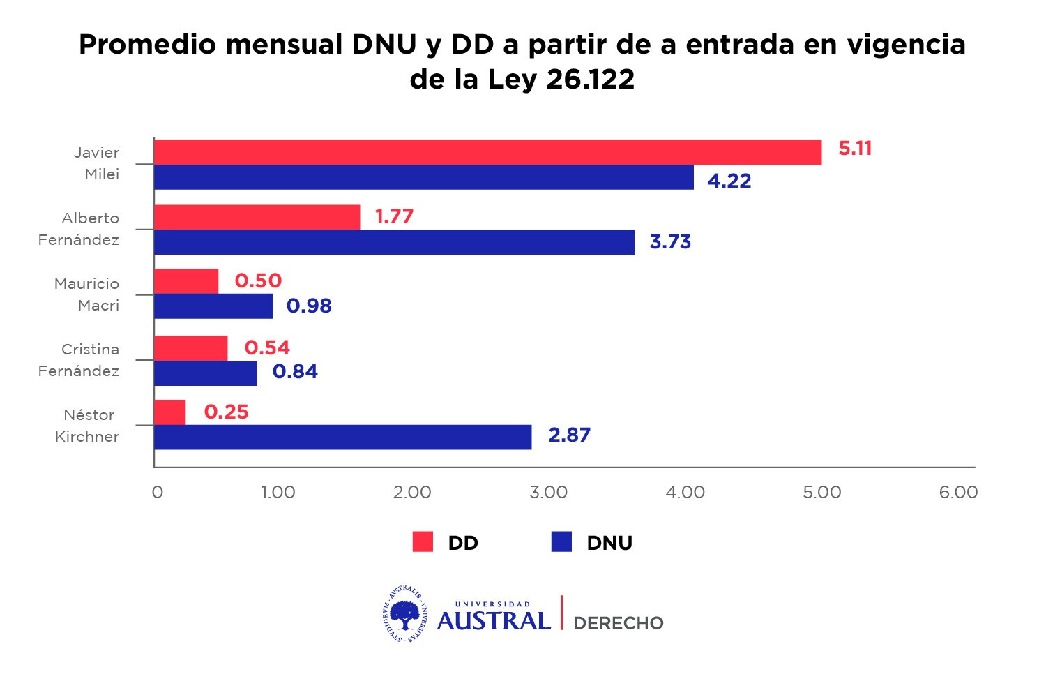 El informe destaca un aumento del 280,85% en la utilización de DNU y un 254,16% en el uso de DD desde la presidencia de Mauricio Macri hasta la actual gestión, con un crecimiento notable en los primeros 18 meses del mandato de Milei. Si bien la pandemia había impulsado el uso de estos decretos en 2020, la falta de mayorías legislativas se ha mantenido como factor clave en su crecimiento, llevando al oficialismo a recurrir con mayor frecuencia a los decretos delegados.