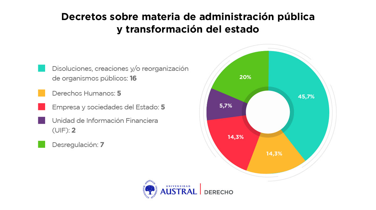 Entre diciembre de 2023 y julio de 2025, el presidente Javier Milei dictó 92 decretos delegados, 85 de los cuales se emitieron después de la sanción de la Ley de Bases. El análisis revela que un 76% de estos decretos se concentraron en áreas económicas y de administración pública, siendo los temas más destacados el comercio exterior (34.3%) y la reestructuración de Fondos Públicos (31.4%). Además, la transformación del Estado a través de la reorganización de organismos públicos representó el 45.7% de los decretos en el ámbito administrativo.