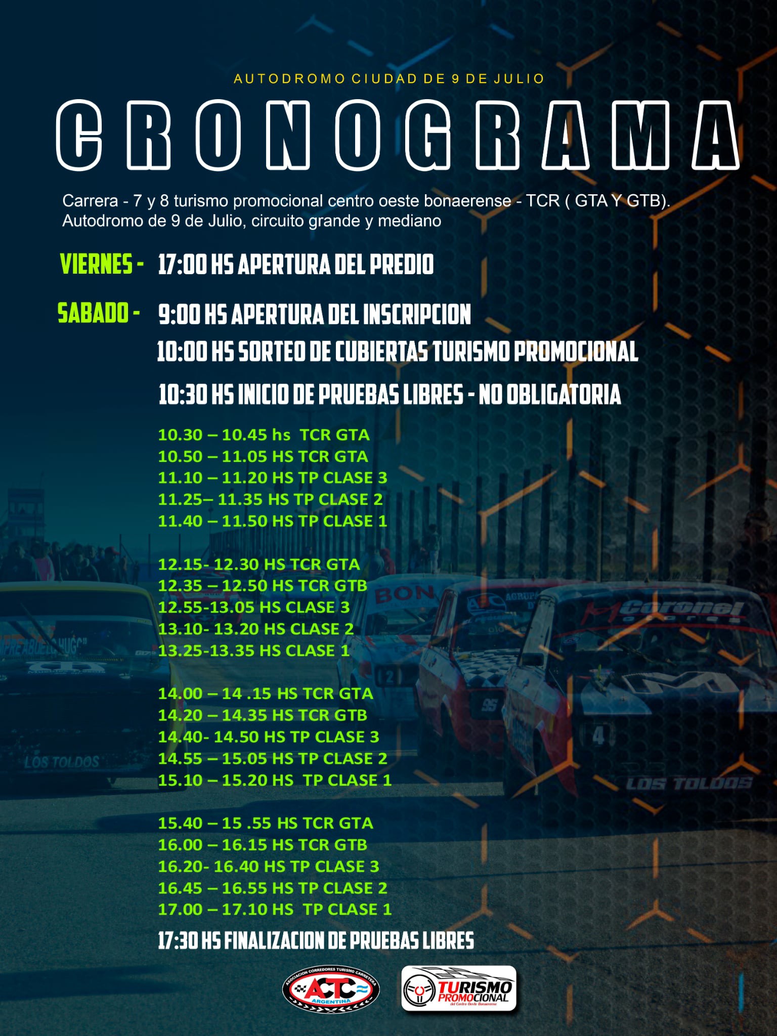 Todo está listo para vivir una gran fiesta del automovilismo en el Autódromo Ciudad de 9 de Julio – Guillermo “Yoyo” Maldonado, este 11 y 12 de octubre. El rugir de motores contará con las fechas 7 y 8 del Turismo Promocional Centro Oeste Bonaerense y el espectáculo del TCR, con sus categorías GTA y GTB, que prometen una doble jornada cargada de adrenalina y emoción.